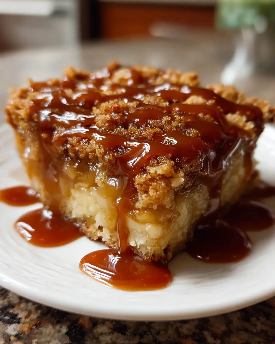 Ah, the pièce de résistance! Drizzle the melted butter evenly across the dry cake mix layer. After that, take your caramel topping and pour it generously over the butter. You guessed it—no stirring again! This delightful layering will create pockets of caramel goodness that oozes out as you serve it.