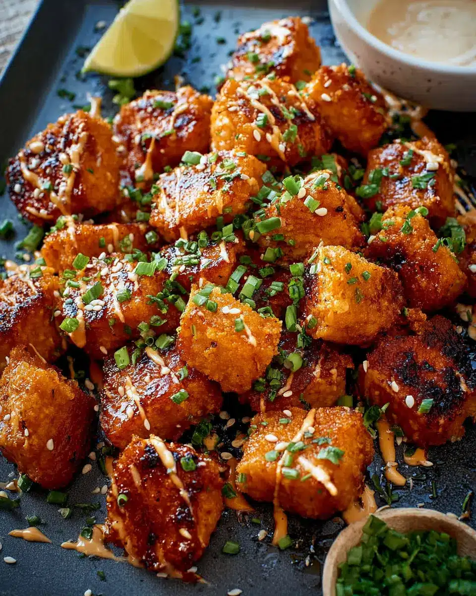 If you prefer baking, you can easily adapt this recipe for the oven. Preheat to 400°F, line a baking sheet with parchment paper, and bake the salmon bites for about 16 minutes. Just remember to toss them in the bang bang sauce only after baking to avoid burning! For detailed instructions, consider checking out guides on baking seafood.