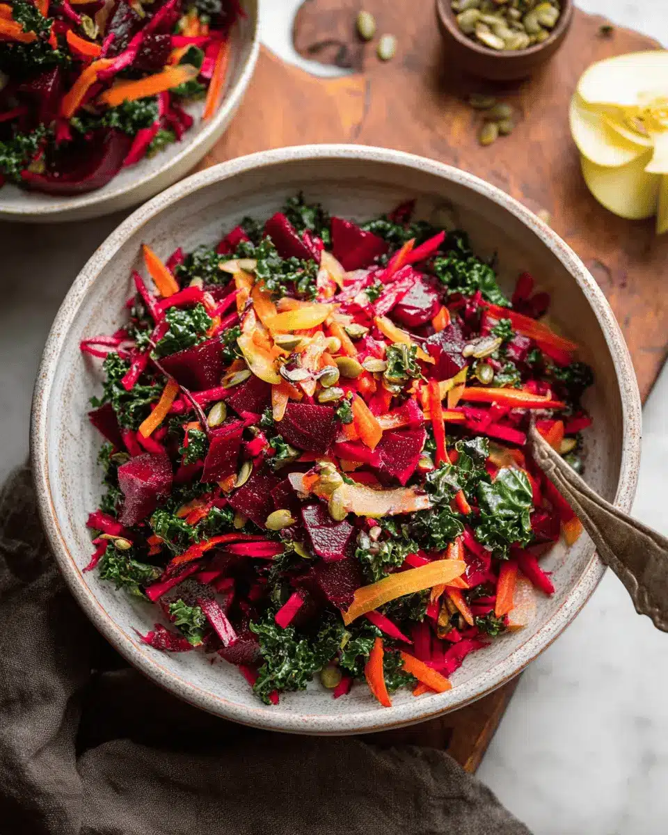 Before diving into the deliciousness of the Apple Beet Carrot Kale Salad, it’s essential to prep your ingredients properly. Start by washing your fresh produce — this not only removes any dirt but also helps enhance the vibrant colors that will make your salad pop. For the apples, choose a crisp variety like Fuji or Granny Smith for that perfect balance of sweetness and tartness. Once cored, slice the apples into thin strips, known as julienning, to create a delightful texture.