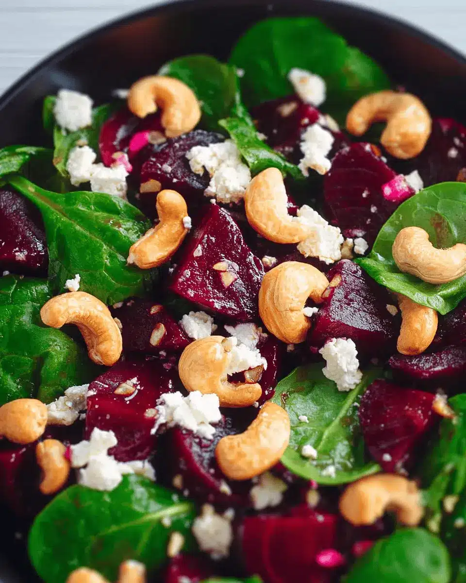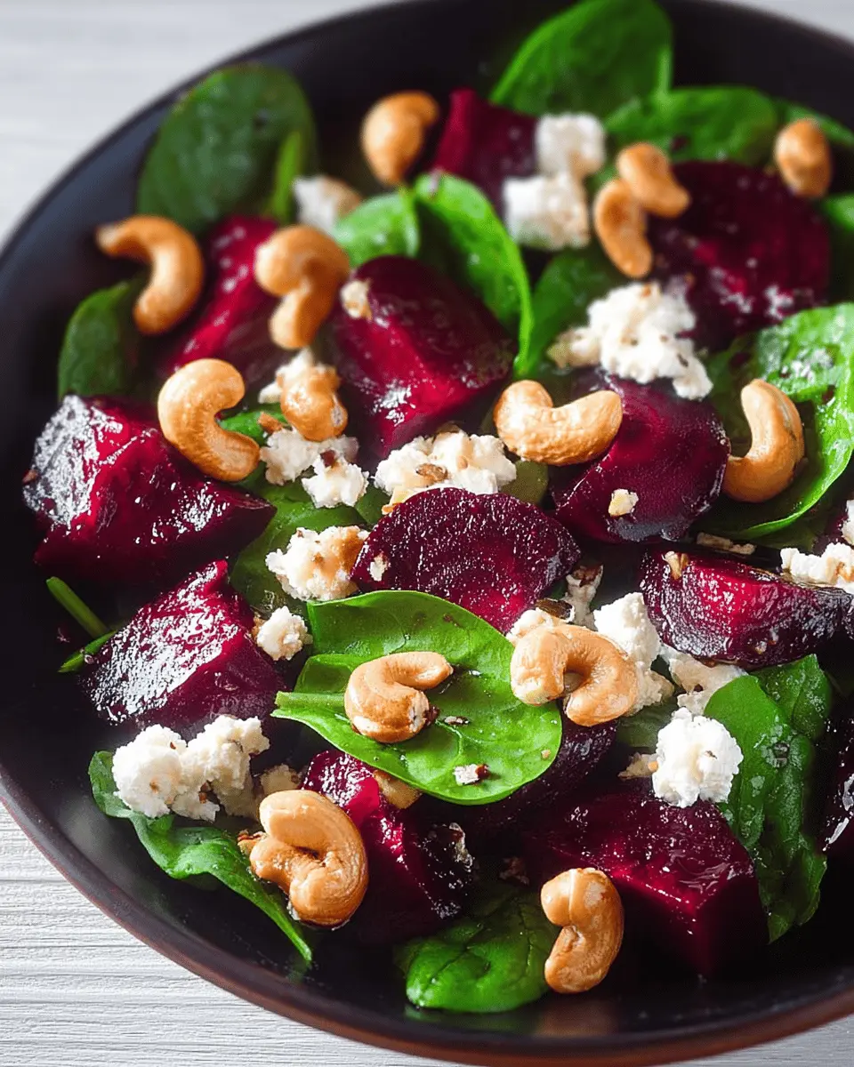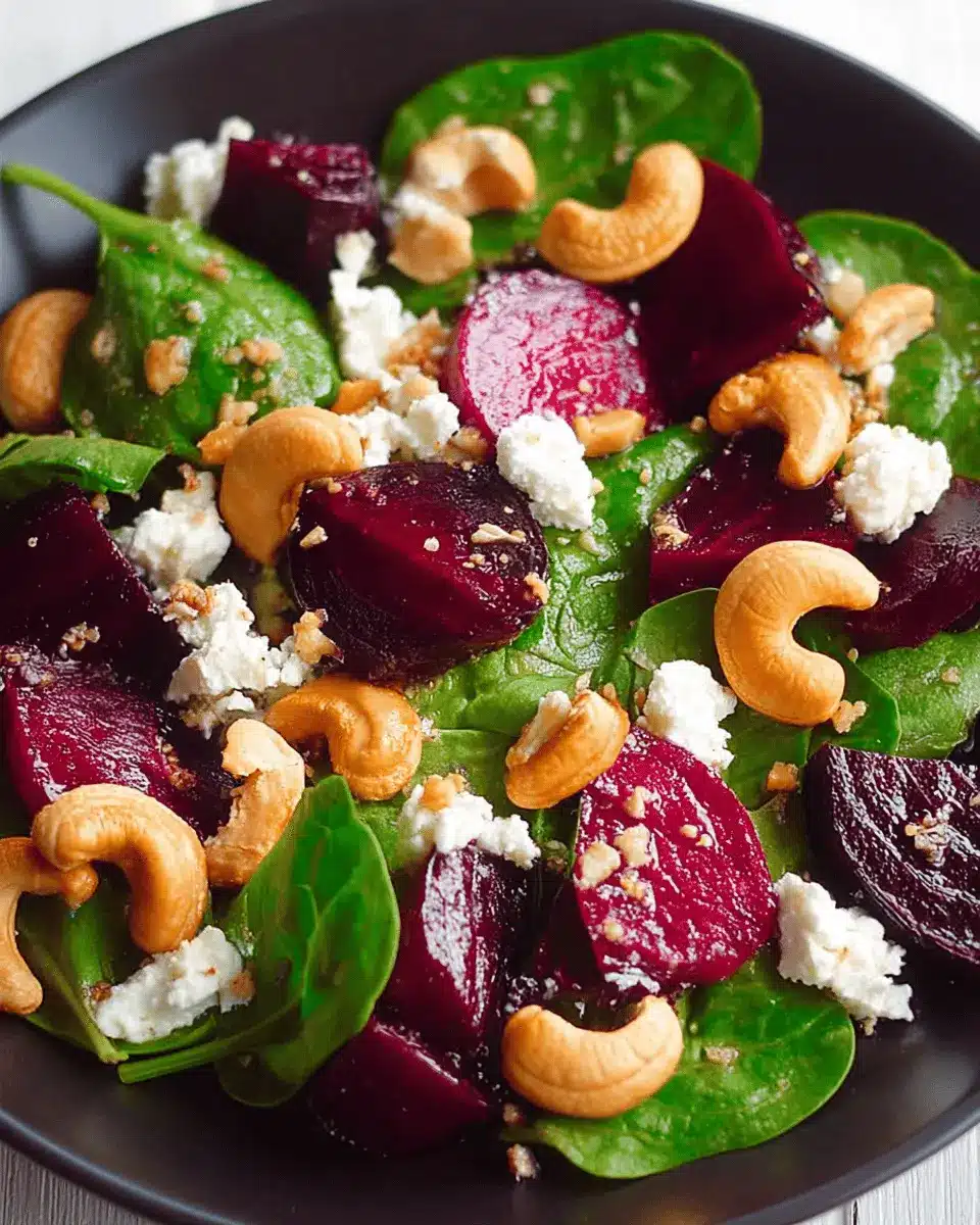 Beet Salad with Spinach, Cashews, and Goat Cheese