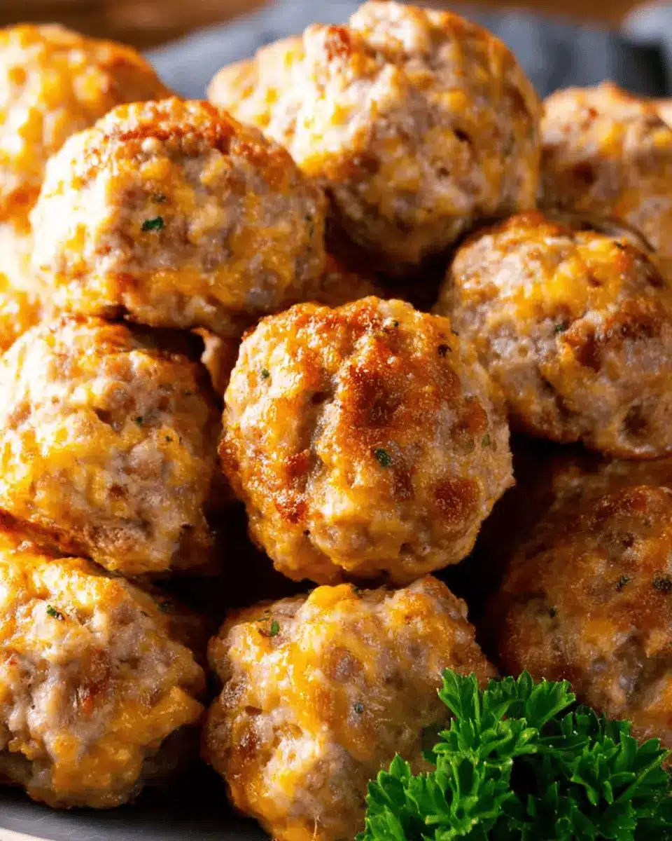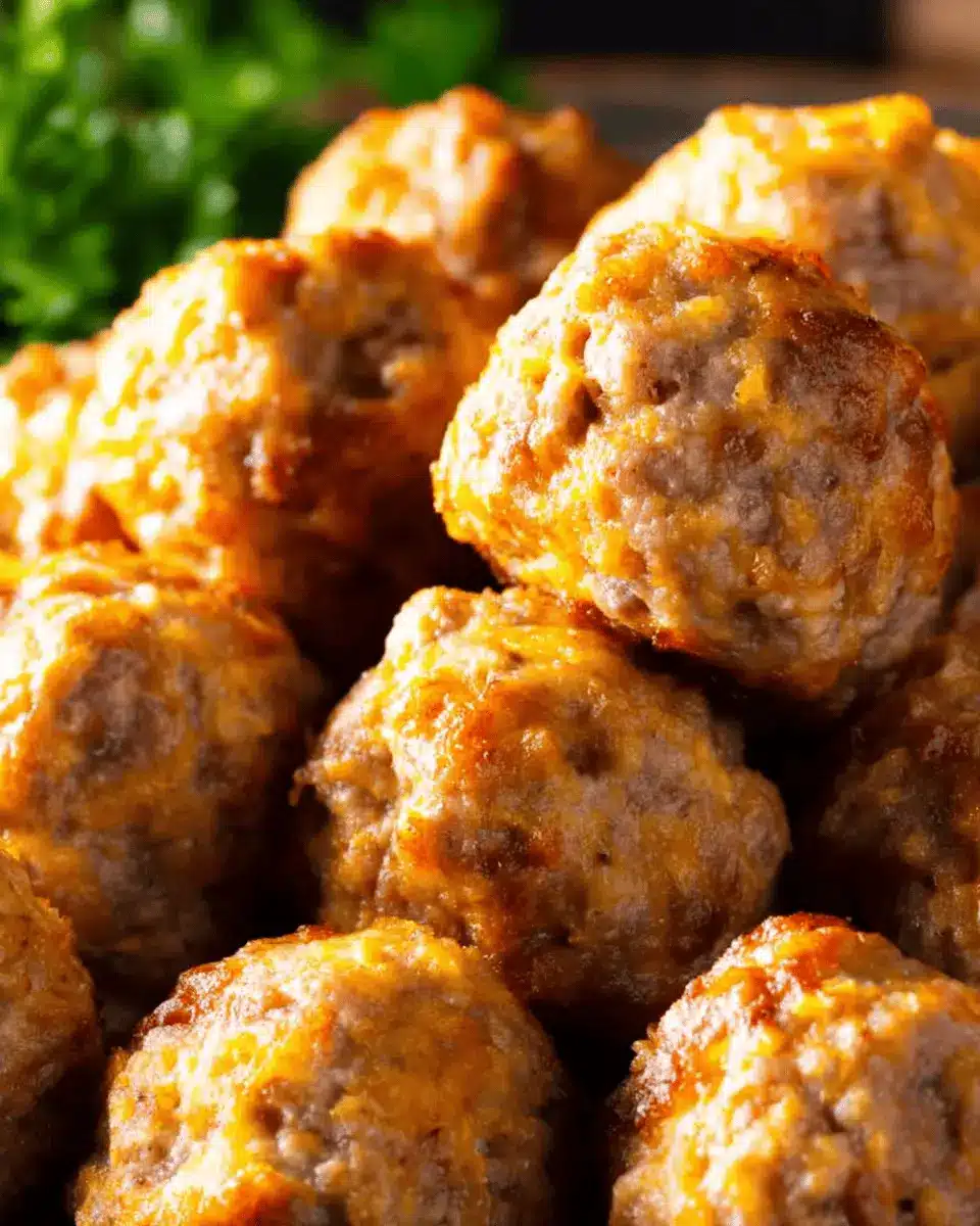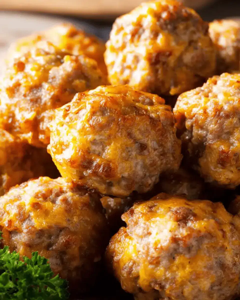 If you have any leftovers (which is rare but can happen!), let them cool completely before storing. Keep your sausage balls in an airtight container at room temperature for a day or in the fridge for up to 3 days. You can also freeze them for up to a month. To reheat, pop them back in the oven at 350°F (177°C) until warm.