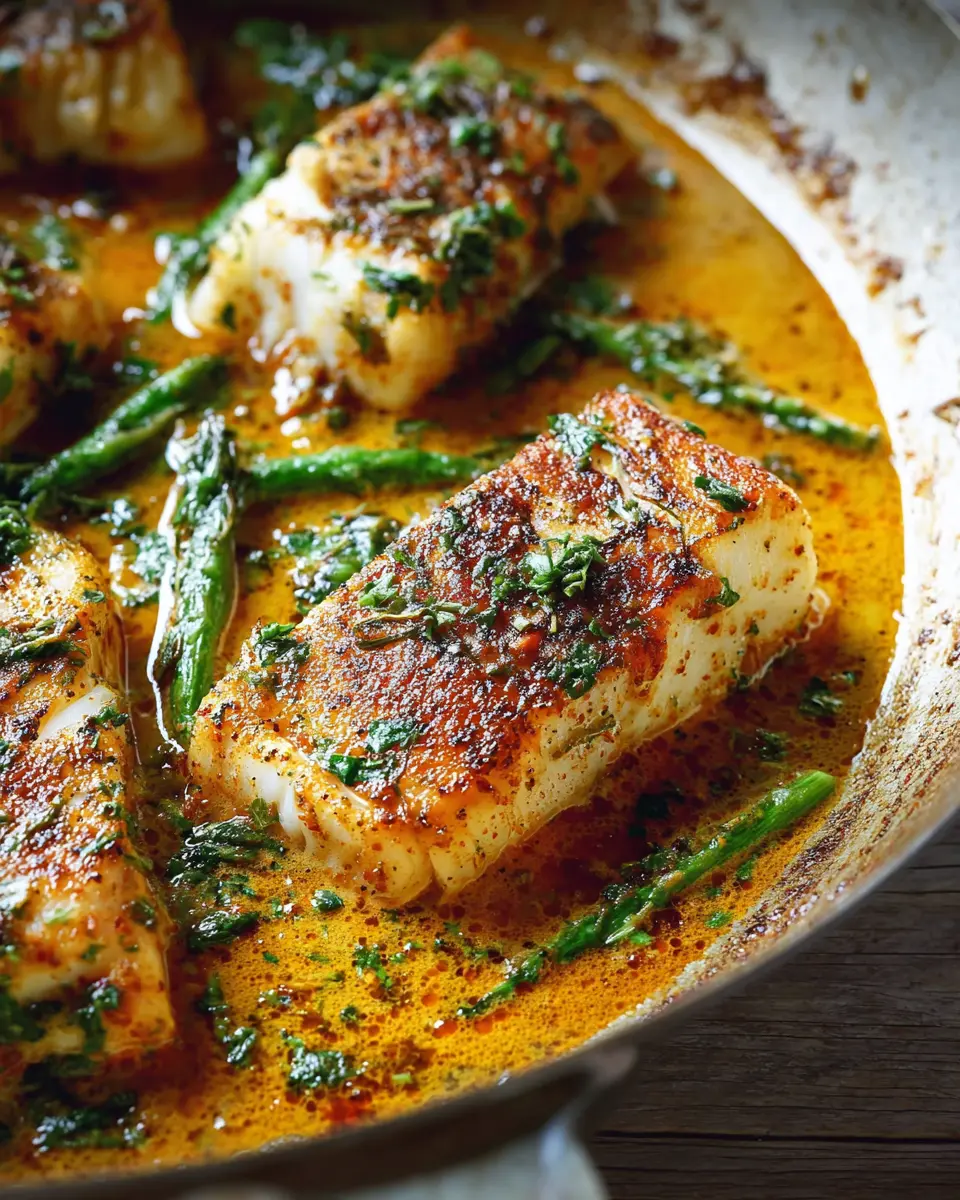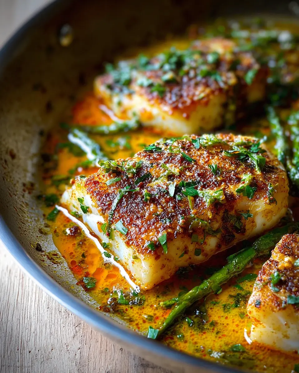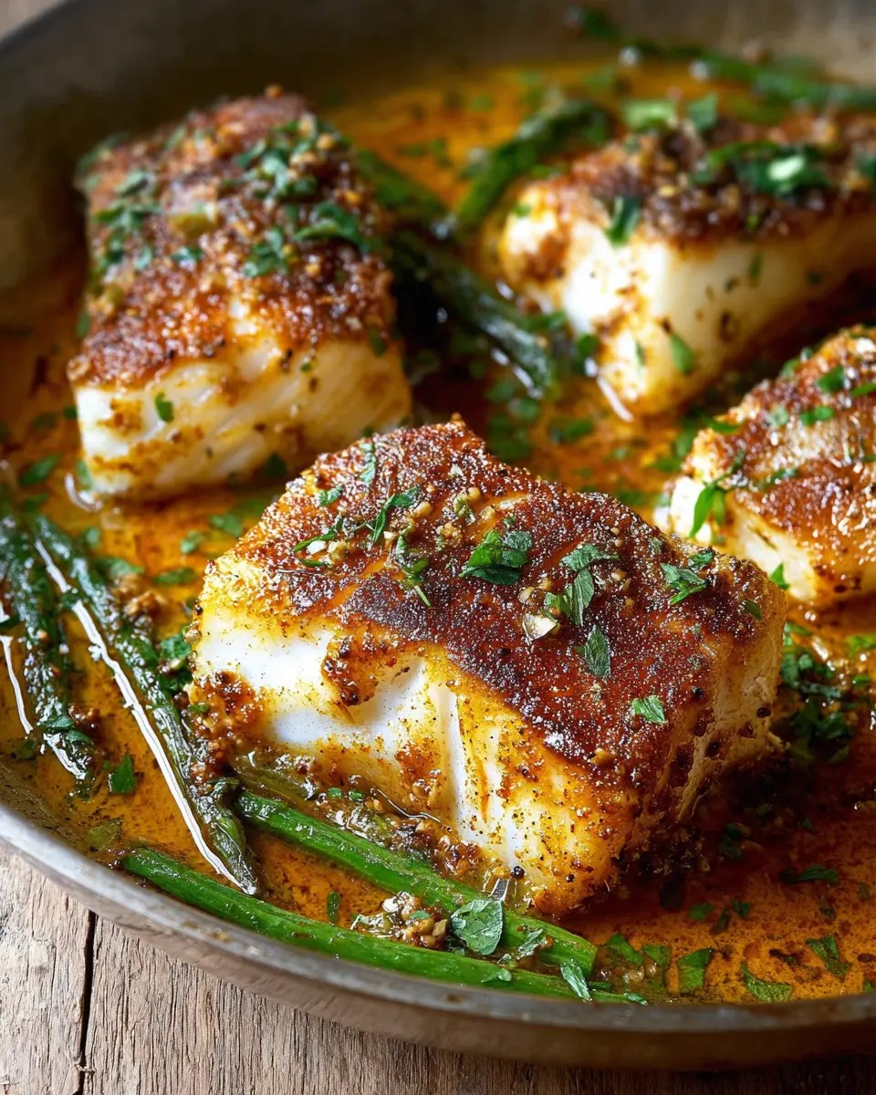 To finish your Cajun Garlic Butter Cod, toss the asparagus into the pan, mixing in the cooked garlic and shallots. Cook for an additional three minutes until the asparagus is tender yet crisp. Now, return the cod fillets to the skillet, allowing them to soak up all those delicious flavors for another three minutes. Just before serving, drizzle with fresh lemon juice and garnish with parsley for that pop of freshness.