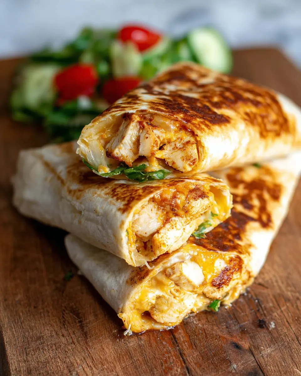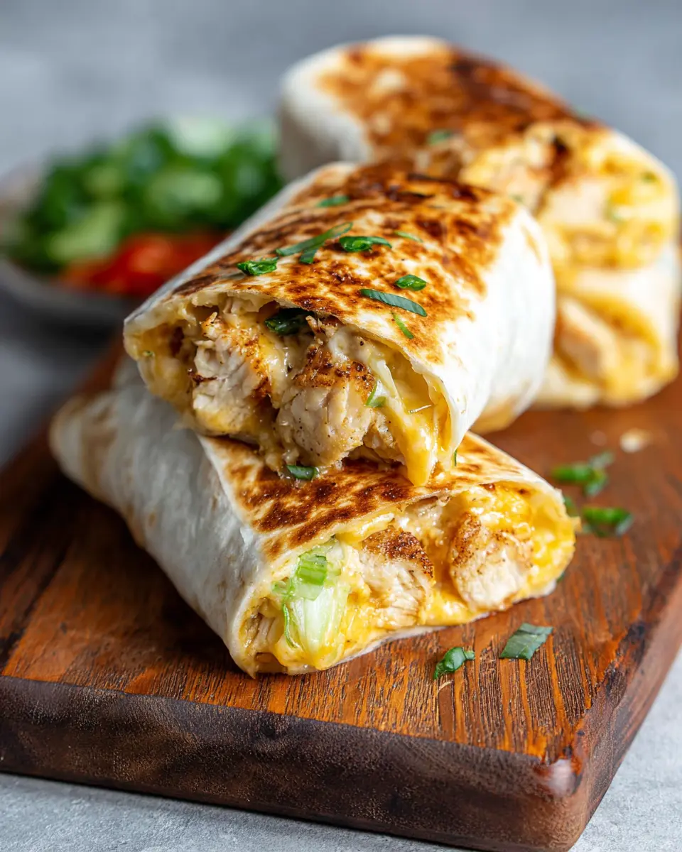Once your wraps are cooked to crispy perfection, it’s time to slice them in half. This not only looks appealing but also makes them easier to handle. Serve your Cheesy Garlic Chicken Wraps alongside a big, crunchy salad, or maybe some roasted veggies. Don’t forget salsa for dipping—it adds an extra flavor dimension!