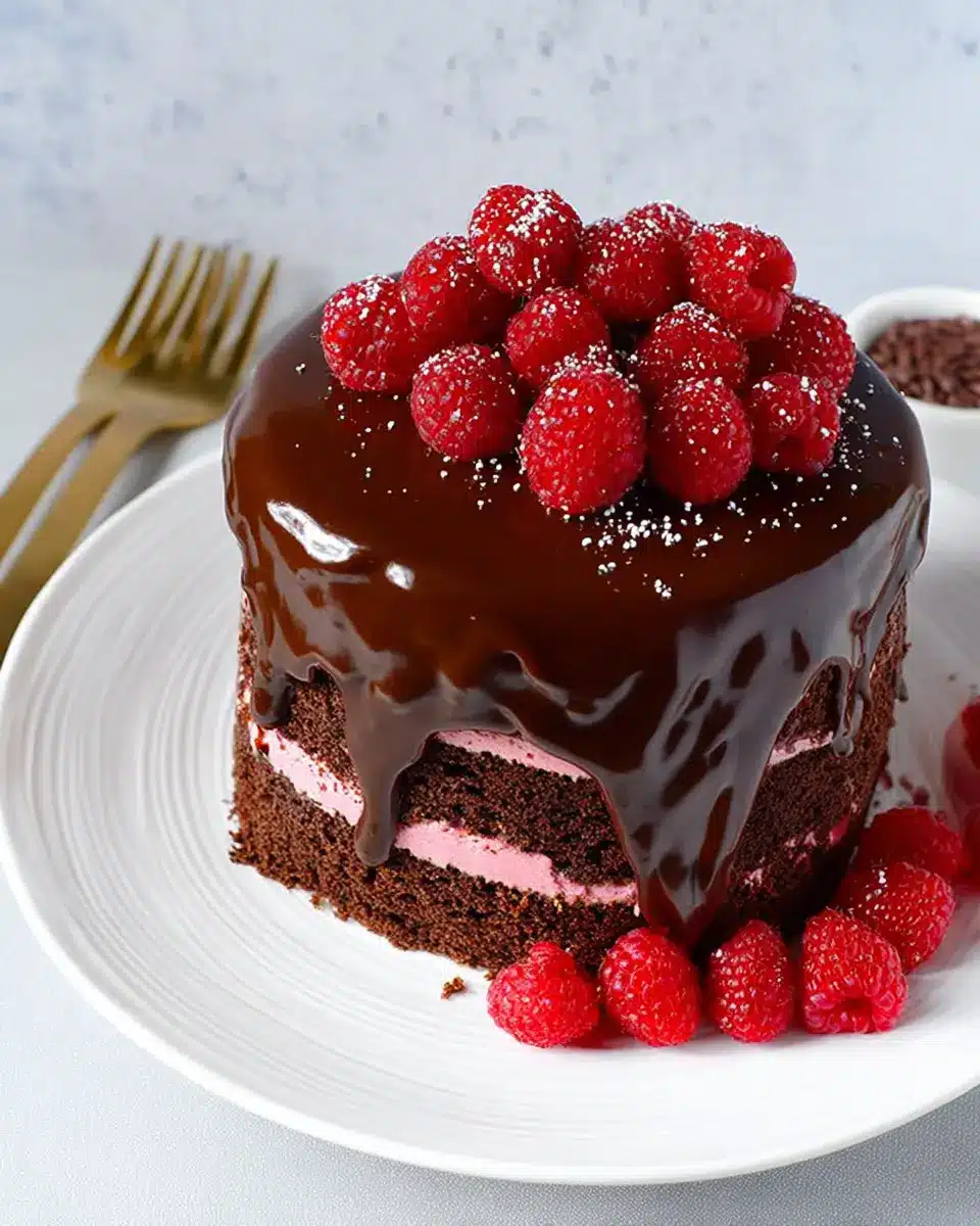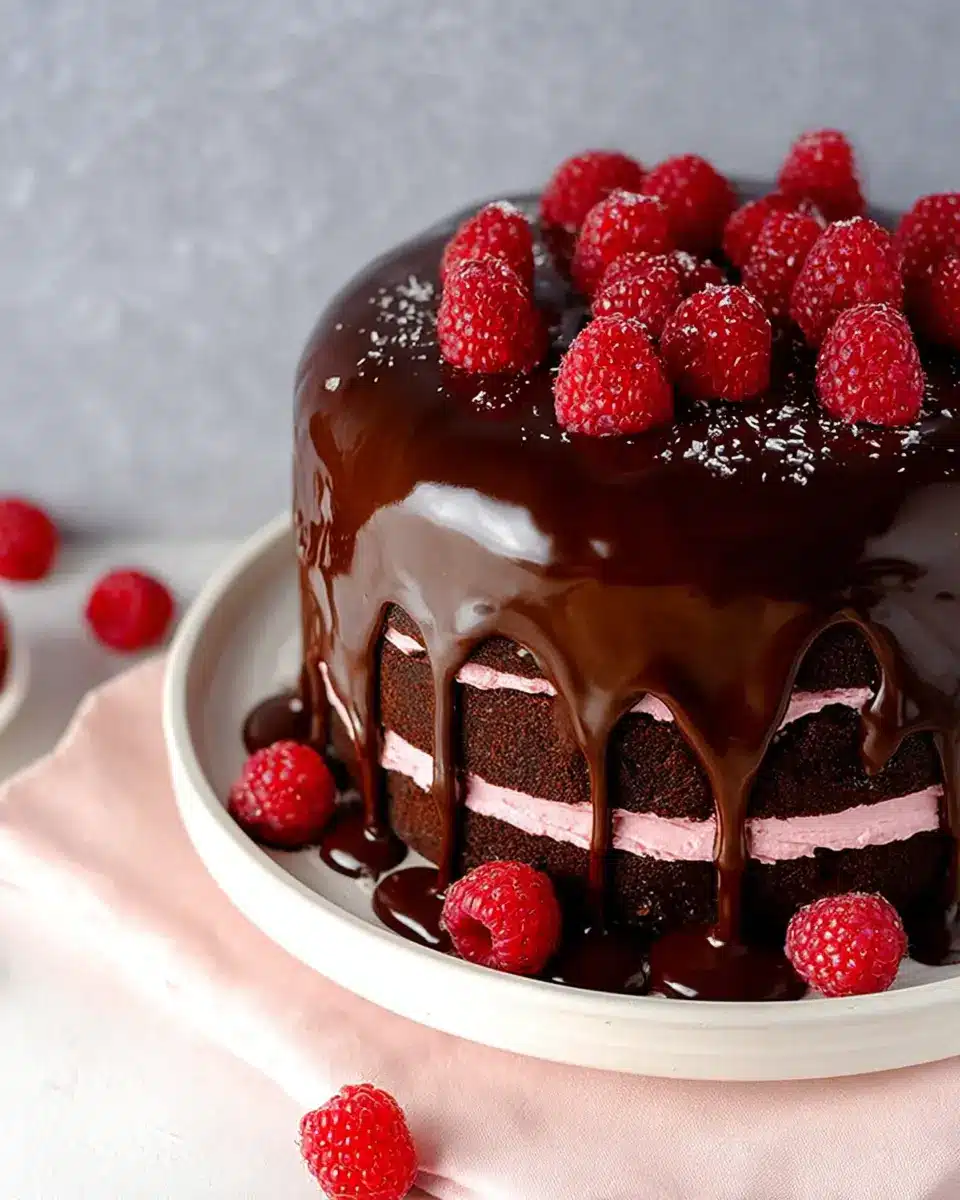 Now that you’ve created a stunning Chocolate Raspberry Truffle Cake, finish it off with any desired decorations—fresh raspberries are a perfect touch. Chill until you’re ready to serve, and enjoy the accolades that follow!