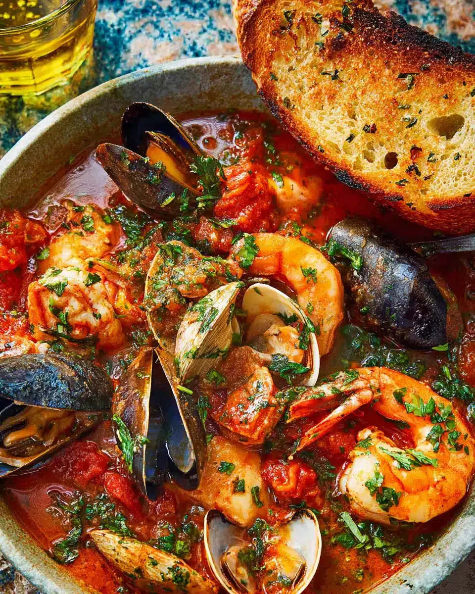 No Cioppino is complete without some amazing bread to soak up that rich, savory broth. A crusty sourdough or a warm baguette works wonders for mopping up every last drop. For a twist, serve grilled garlic bread topped with herbs for an aromatic experience. Just imagine the flavors melding together—pure perfection!