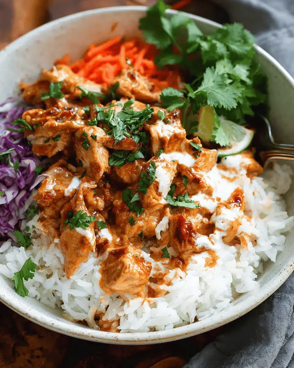 And there you have it! A beautiful, wholesome Coconut Chicken Rice Bowl that’s ready to be enjoyed. Feel free to share with friends or save for meal prep; either way, it’s sure to be a hit.