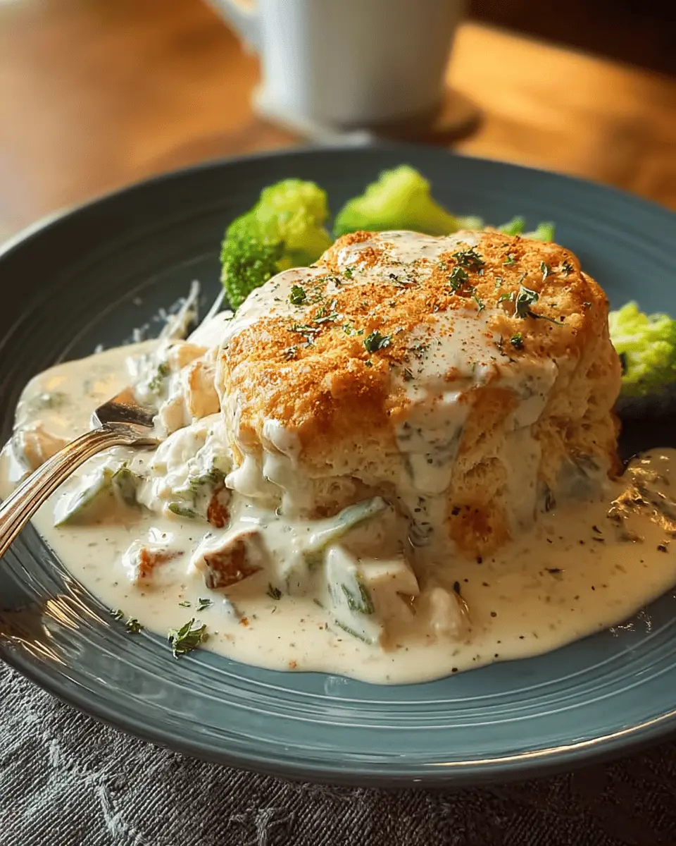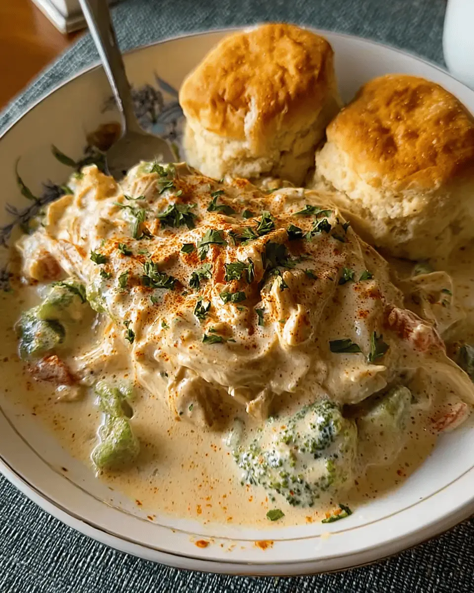 Finally, serve your delicious creamed chicken for biscuits over hot, freshly baked biscuits. The contrast between the warm, flaky biscuits and the creamy, rich chicken makes every bite feel like a warm hug. If you have some toasted almonds, sprinkle them on top for added texture and flavor. Want to make it special? Try drizzling a bit of homemade gravy or hot sauce for an extra kick!