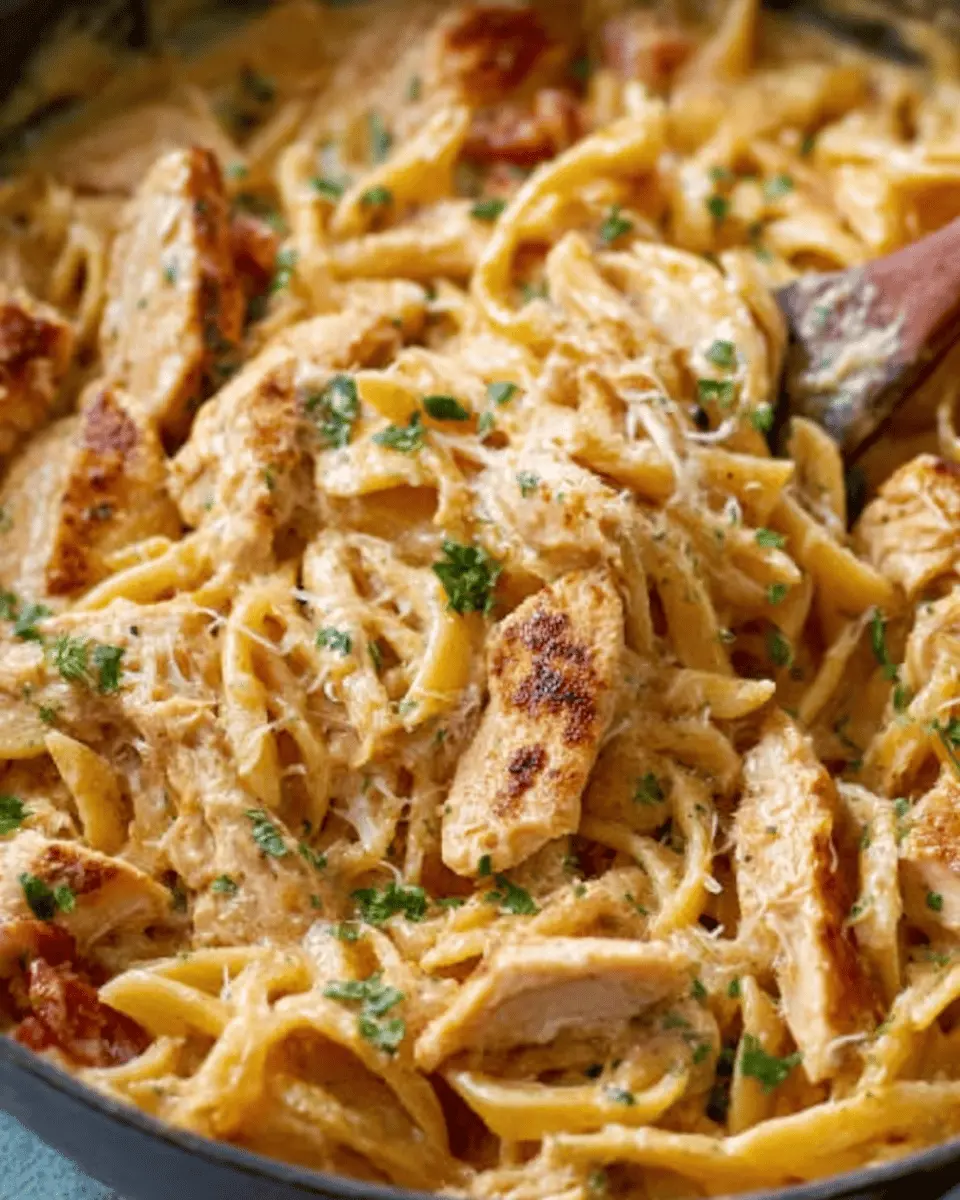 If you're looking for a meatless twist on this creamy dish, simply swap out the chicken for a variety of vegetables. Think bell peppers, zucchini, and mushrooms sautéed to perfection. Add in a plant-based cream cheese or even cashew cream for that rich, creamy texture. Incorporate your favorite pasta and enjoy a hearty meal that’s just as satisfying!