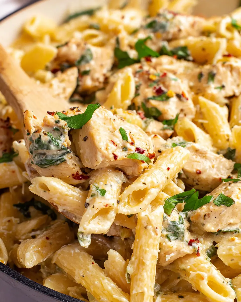 Elevate your dish's presentation by adding a sprinkle of freshly chopped parsley or basil on top of your creamy garlic chicken pasta. A dusting of extra Parmesan cheese also enhances both the flavor and the visual appeal. Consider topping it off with a few cherry tomatoes or toasted pine nuts to create an inviting and chef-inspired plate.