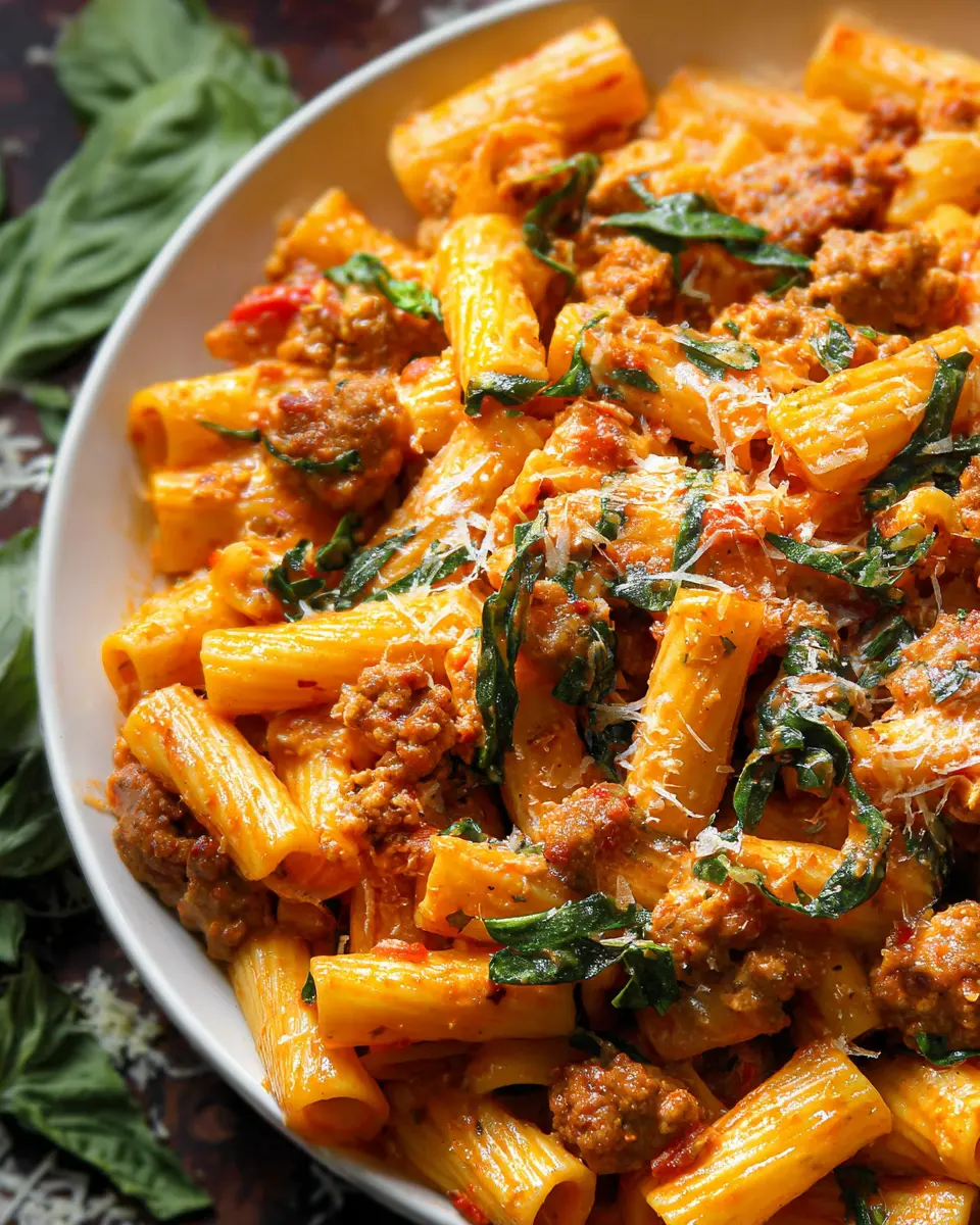 Elevate your Creamy Sausage Rigatoni with a few thoughtful garnishes. A sprinkle of freshly grated Parmesan cheese adds a salty tang, while a handful of fresh basil or parsley provides a bright, herbal contrast. Additionally, a pinch of red pepper flakes can introduce a touch of heat, enhancing the flavors beautifully.