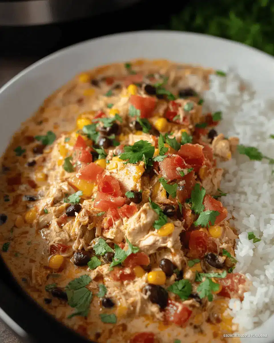 In conclusion, this Crock Pot Fiesta Chicken recipe is an ideal solution for busy lifestyles. With minimal prep, it transforms ingredients into a delicious meal that can be enjoyed in various ways—tacos, salads, or bowls. Perfect for weeknight dinners, it simplifies homemade cooking without sacrificing flavor!