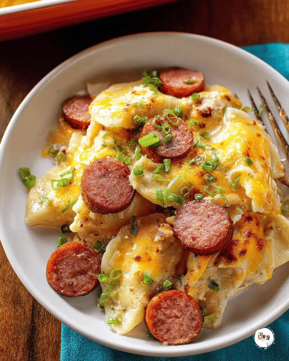 Garnishing your Crock Pot Pierogi and Kielbasa Casserole can take it to the next level. Using sliced green onions adds a pop of color and a mild onion flavor, while a sprinkle of fresh herbs like parsley or dill can brighten up the dish. For a bit of heat, consider finely chopped jalapeños or a drizzle of hot sauce. Not only do these toppings add a burst of flavor, but they also make your meal look Instagram-ready!