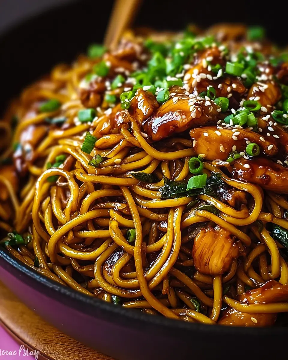Finally, it’s time to plate your beautiful chicken teriyaki noodles. Garnish with chopped green onions and a sprinkle of sesame seeds for extra flair. Serve hot and watch everyone dig in with smiles on their faces!