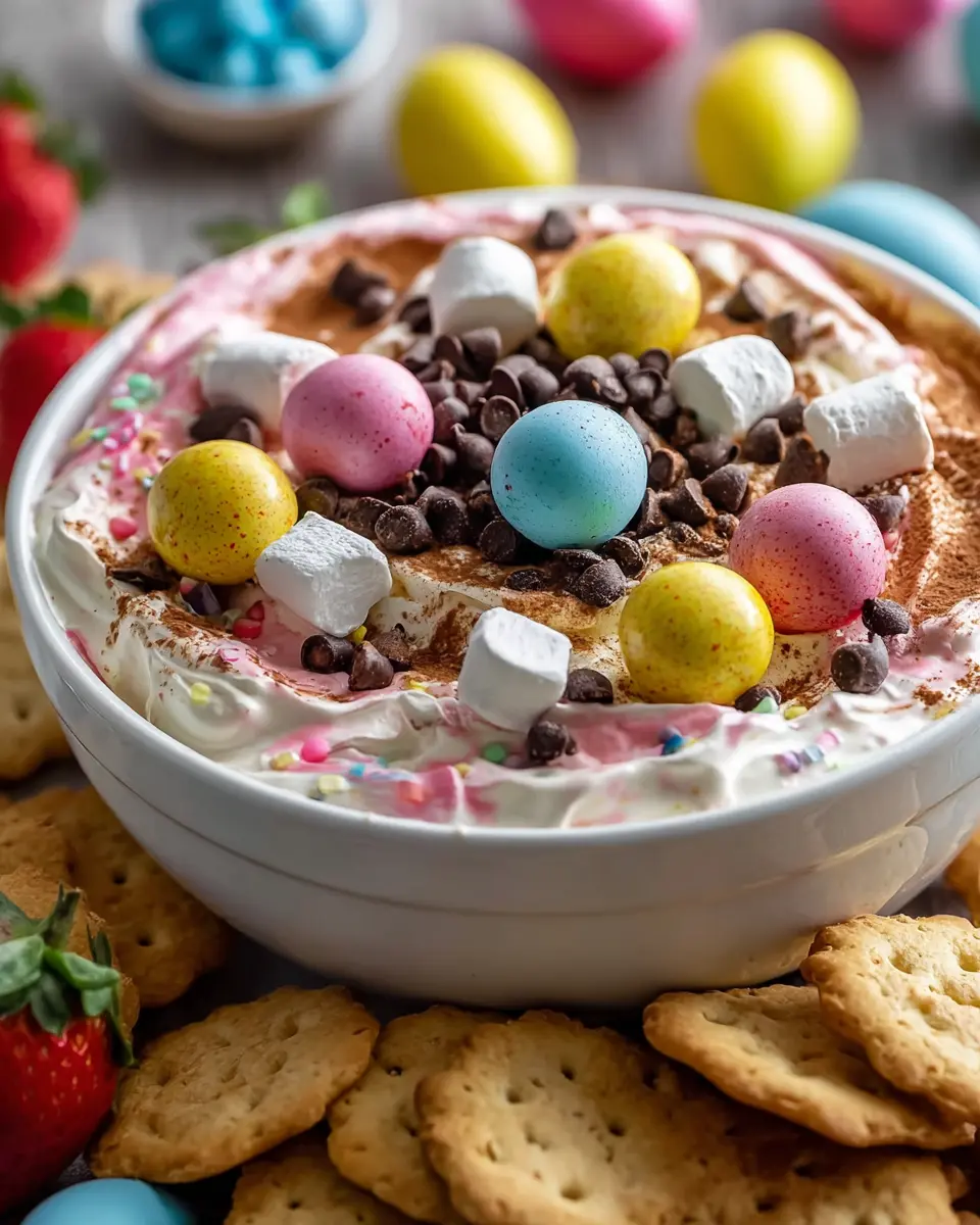 For the chocolate lovers in your life, why not elevate your Easter Dessert Dip with even more chocolate? Add a few extra tablespoons of cocoa powder for a deep, rich flavor. Top it off with a drizzle of hot fudge and more mini chocolate chips for an indulgent experience. Serve it with chocolate-dipped strawberries or pretzels for a creative twist. This variation is sure to satisfy any sweet tooth and have guests coming back for more!