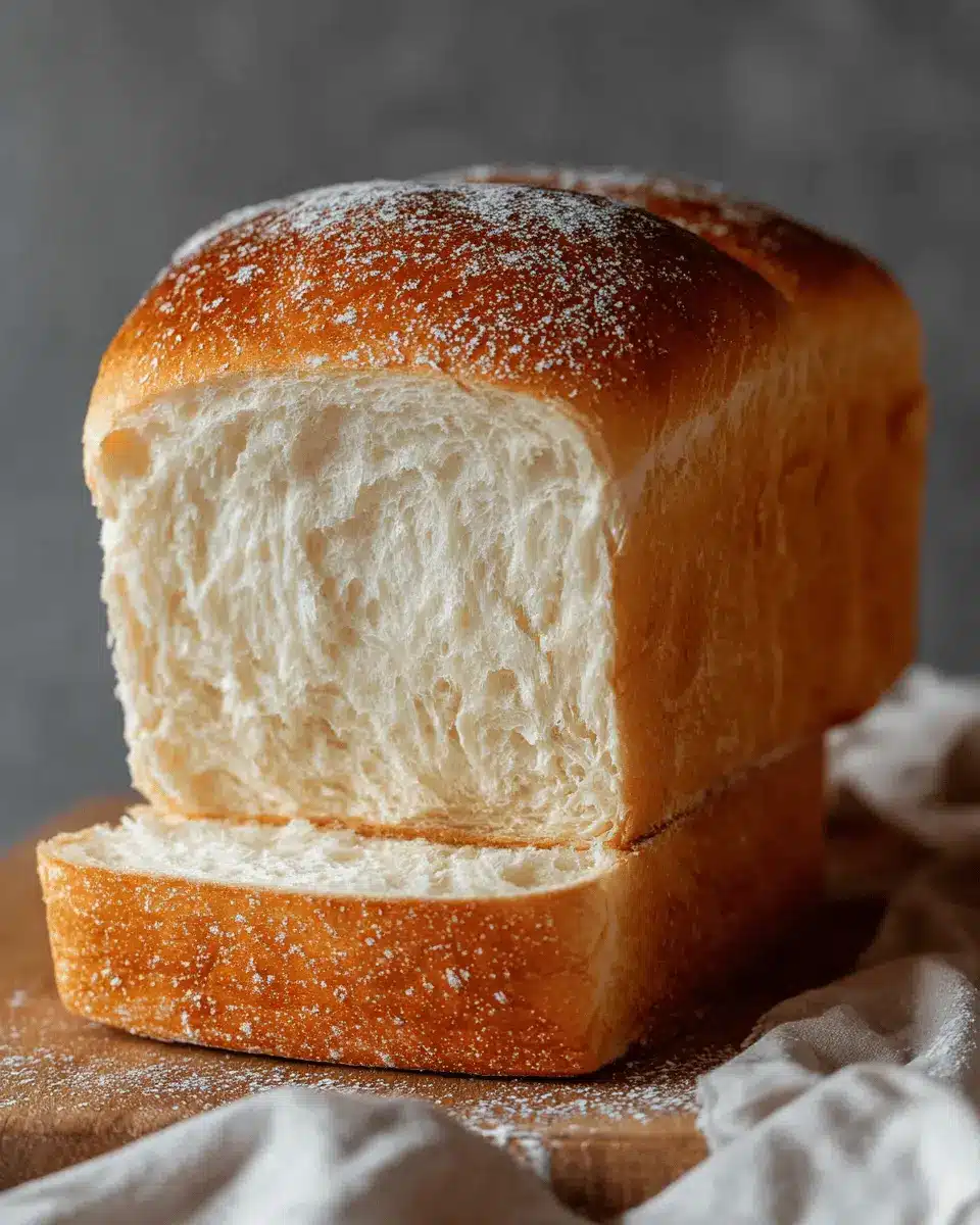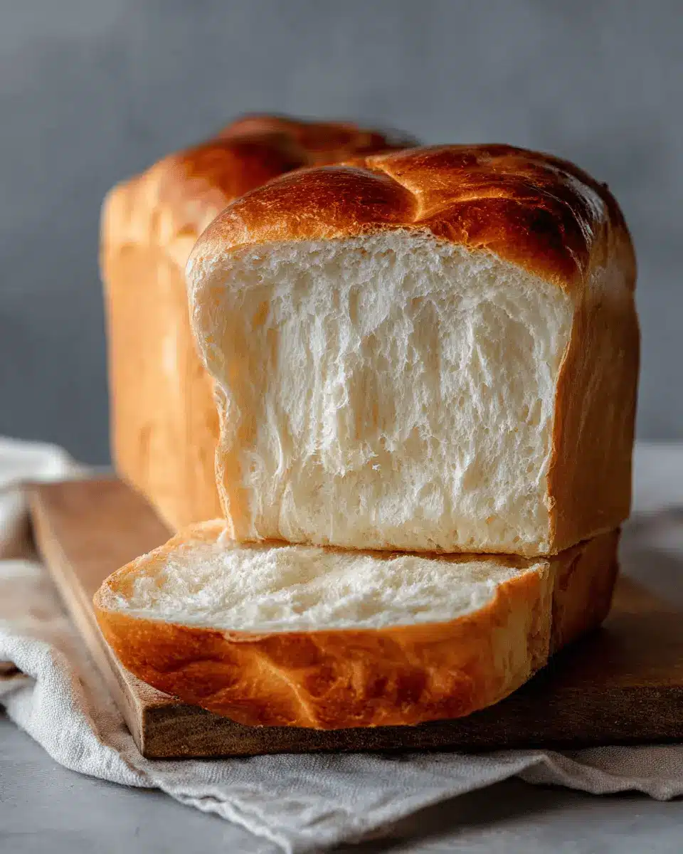 Once baked, remove your easy milk bread loaf from the oven and drop the pan from a short height onto a counter to prevent shrinkage. Immediately transfer the loaf to a cooling rack and brush the top with melted butter for an irresistible shine and richness. Allow it to cool for at least 15 minutes before slicing. This patience pays off as hot bread can be hard to cut without squishing.