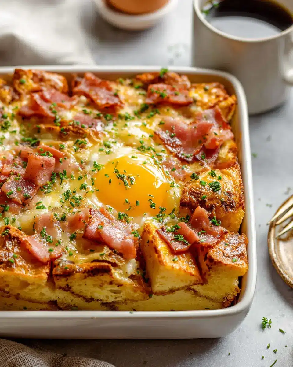 Imagine serving up a warm, hearty slice of this casserole while knowing you've done most of the work the night before. The beauty of this dish lies in its versatility and ease—it captures the elegance of brunch without the hassle. Plus, it’s easy to customize! Want to add some fresh spinach or swap turkey bacon for chicken ham? Go for it!