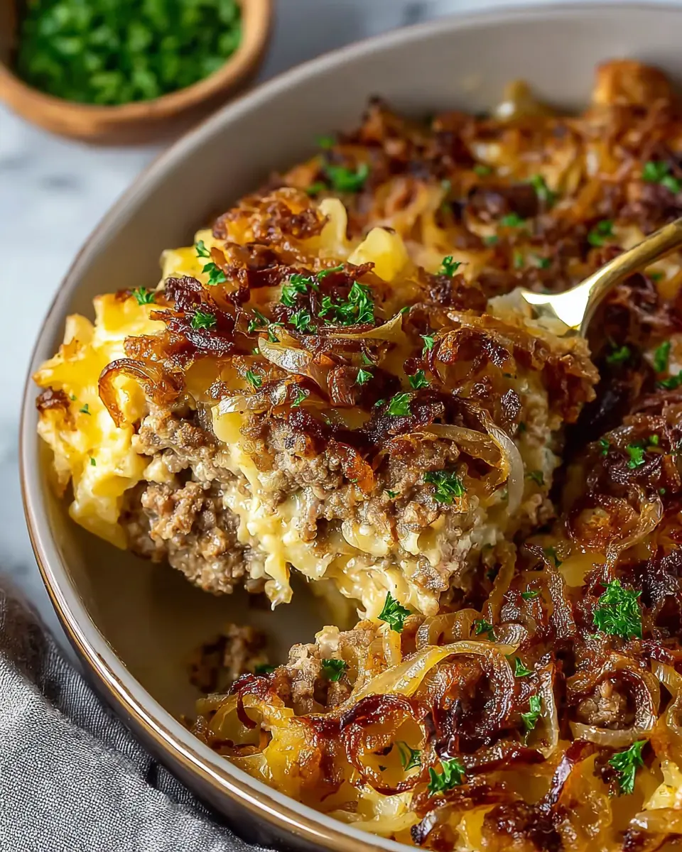 For an easy and satisfying meal, this family French onion hamburger casserole is your go-to solution. In no time, you'll have a delicious dinner ready, allowing more quality time with your loved ones around the table. Ready to dive into the recipe? Let’s get cooking!