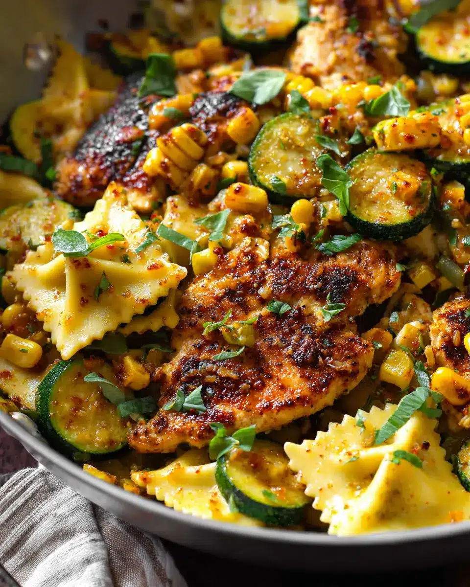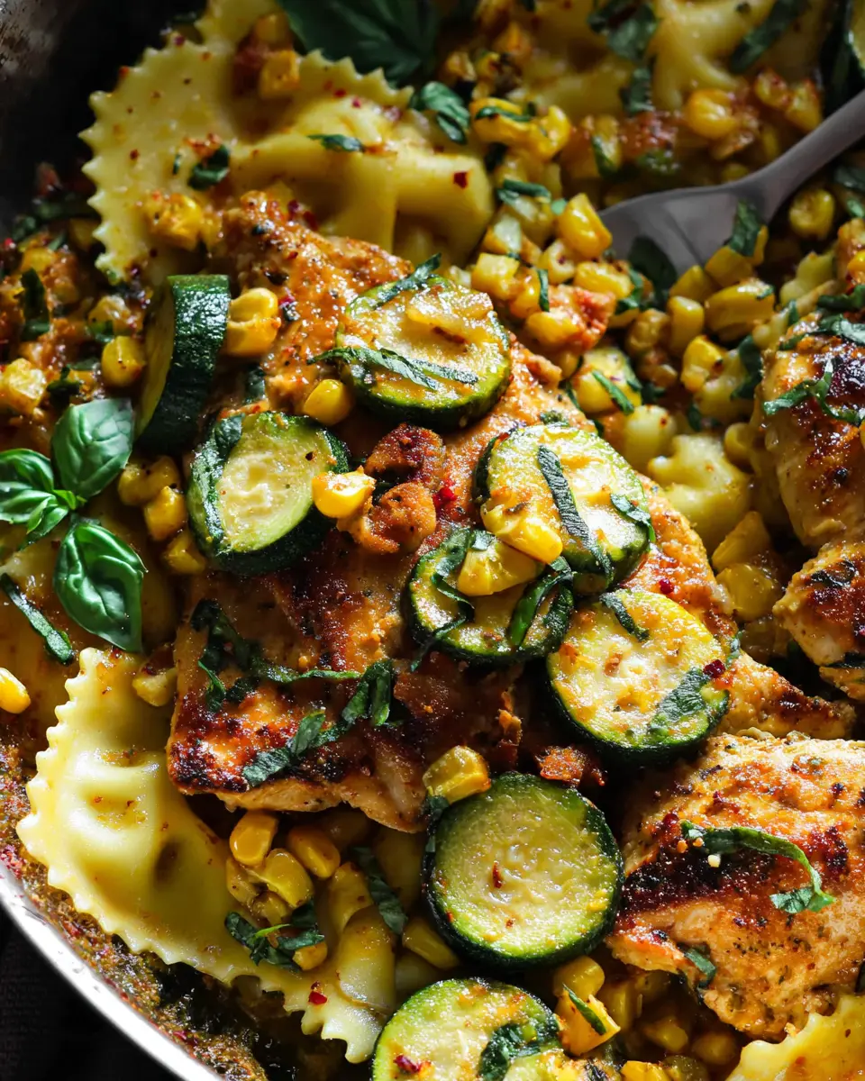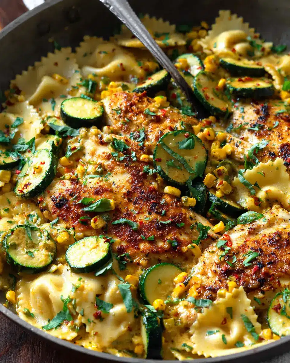 Garlic Butter Chicken with Zucchini, Corn, and Ravioli (30-Minute Recipe)