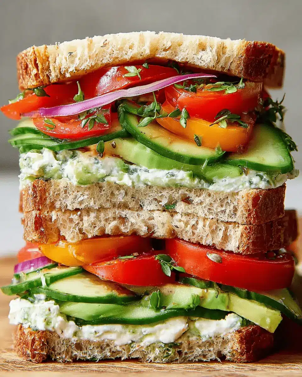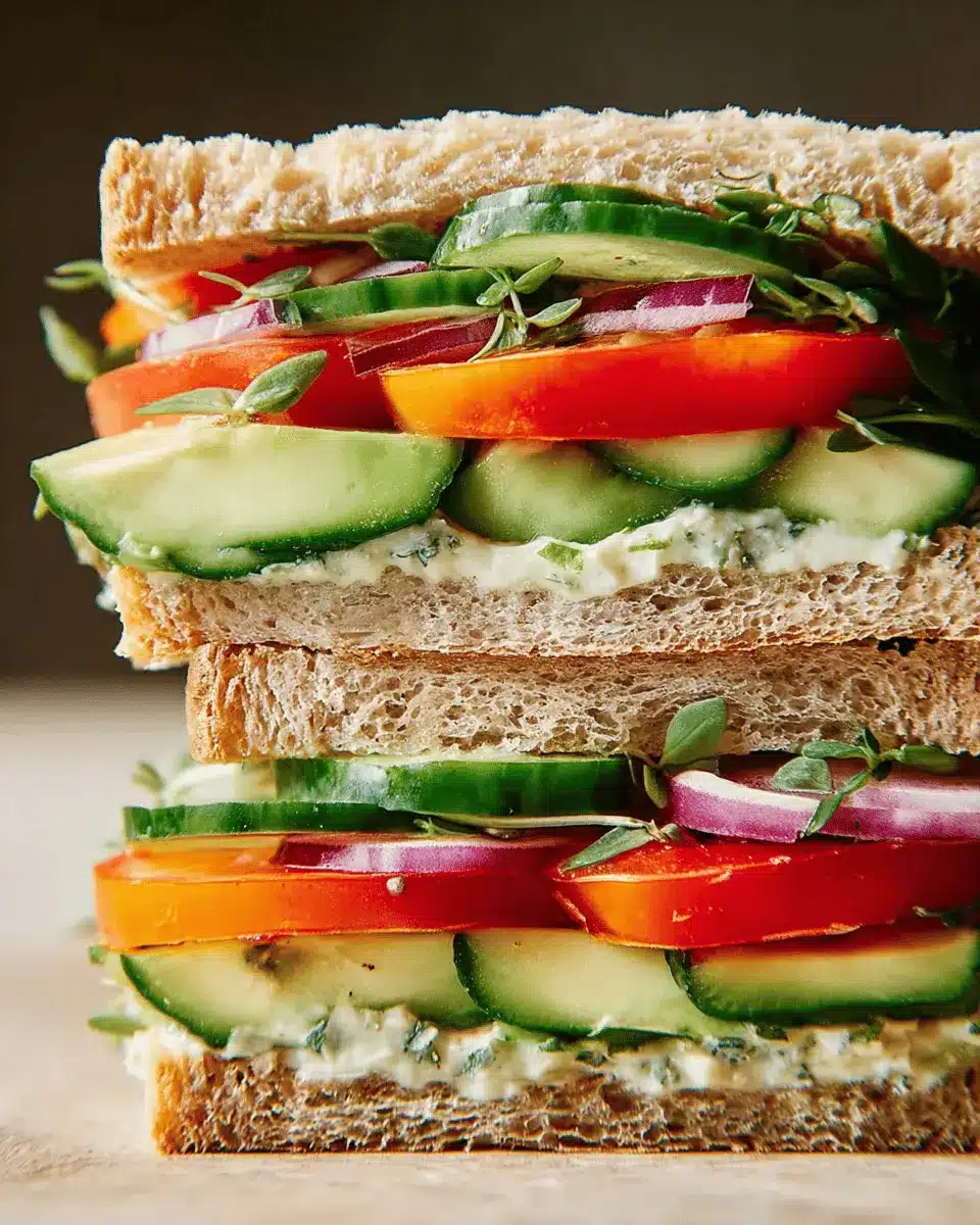 A sandwich is not just about taste—presentation matters! To make your loaded cucumber avocado sandwich visually appealing, slice it diagonally and arrange the pieces on a colorful plate. Garnish with fresh herbs or edible flowers for an elegant touch. For an added flair, serve with a small dish of homemade hummus or a drizzle of balsamic glaze on the side. Using a wooden board for serving can also create a rustic, Instagram-worthy aesthetic! Elevating your presentation will impress your guests and enhance their dining experience.
