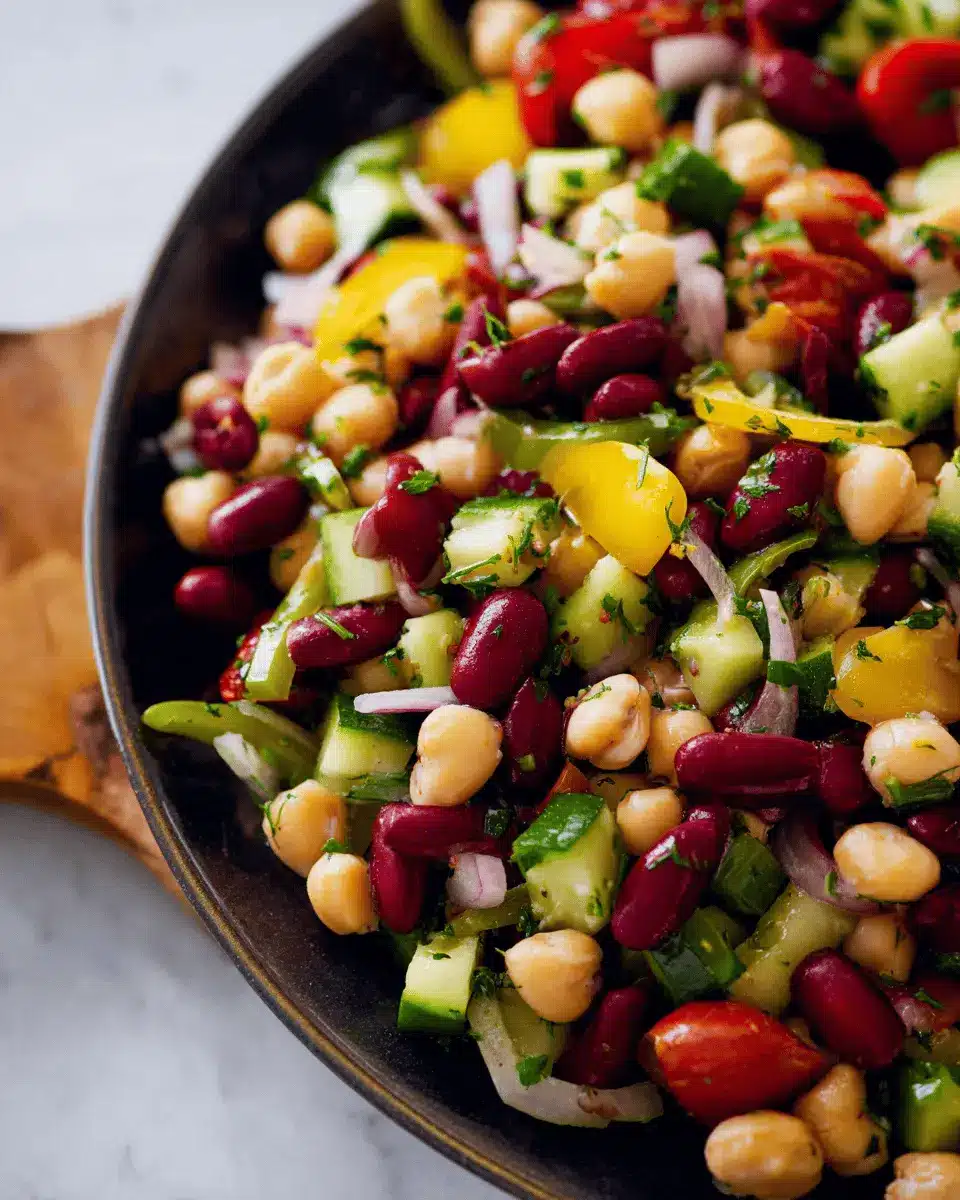 Packed with plant-based goodness, this salad boasts about 10 grams of protein per serving, thanks to the kidney beans and chickpeas, ensuring you stay full and energized.
