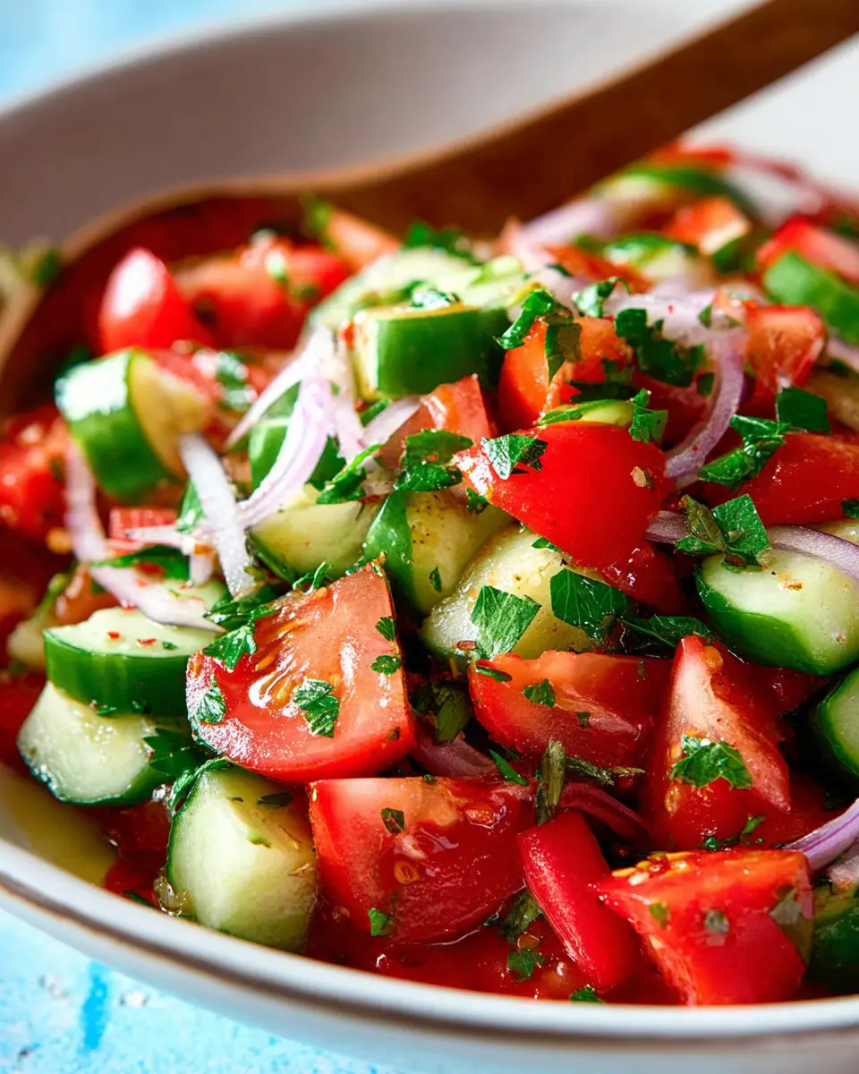Creating a Mediterranean Salad with Tomato and Cucumber starts with fresh, high-quality ingredients. Opt for ripe Roma tomatoes and a crisp English cucumber to give your salad the vibrant color and crunch it deserves. Don't forget to include some fresh parsley—its bright and herbaceous notes elevate your dish to a whole new level!