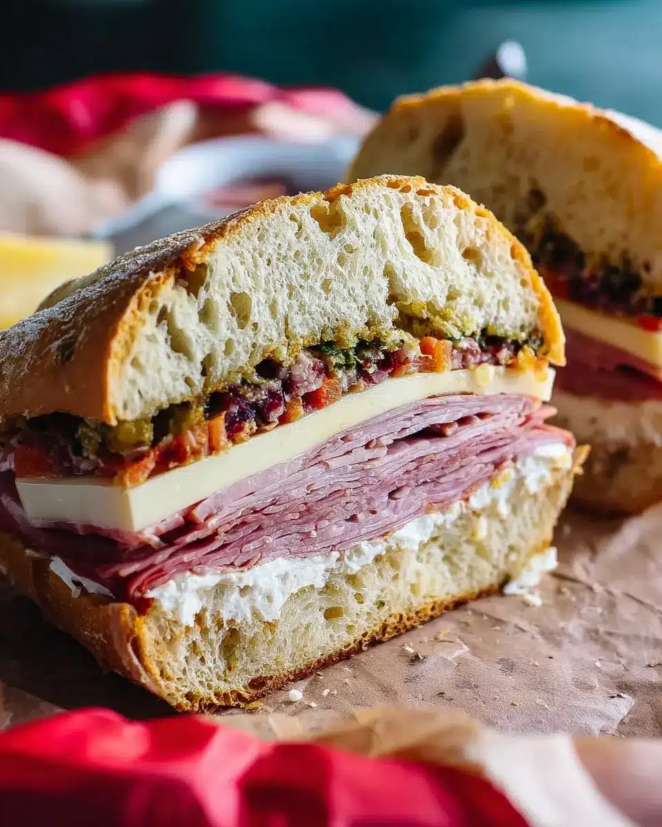 The Muffuletta Sandwich is delicious on its own, but a few simple pairings can elevate your meal even further. Consider serving your sandwich alongside a crisp green salad, dressed lightly with balsamic vinaigrette for that lovely tang that complements the savory flavors.
