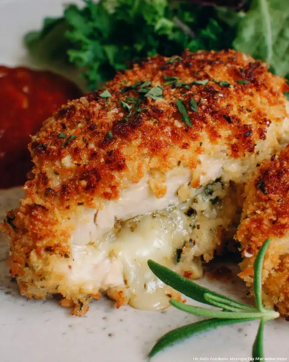 In summary, these Oven Fried Provolone Stuffed Chicken Breasts are a flavorful, satisfying dinner that everyone will love. With a crispy panko and Parmesan coating encasing rich provolone, this dish combines comfort with sophistication. Pair it with marinara and enjoy an easy weeknight meal!