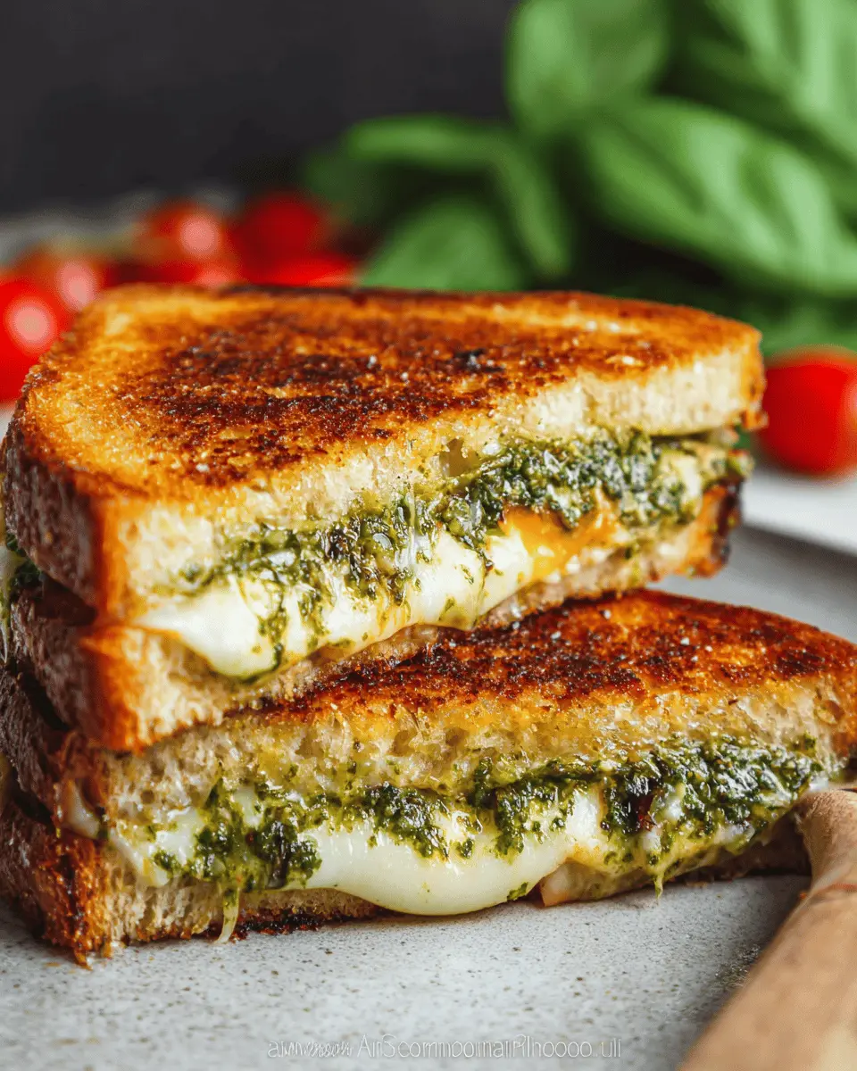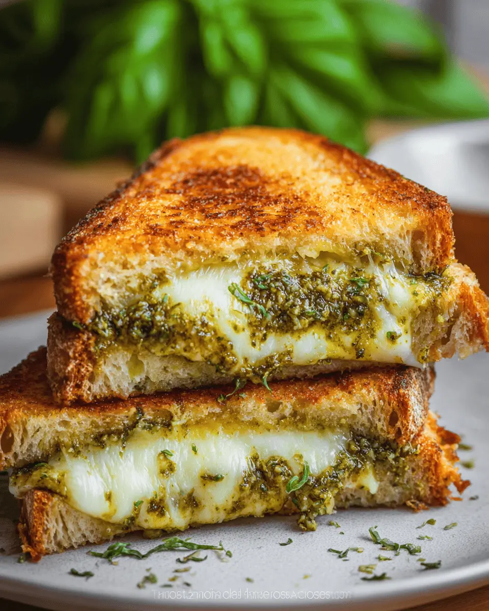 In summary, the pesto grilled cheese is a delightful spin on the classic, offering a burst of flavor and comfort in every bite. Ideal for a quick lunch or a cozy dinner, this sandwich is easy to prepare and utterly satisfying. Don’t forget to pair it with your favorite side for a truly enjoyable meal!