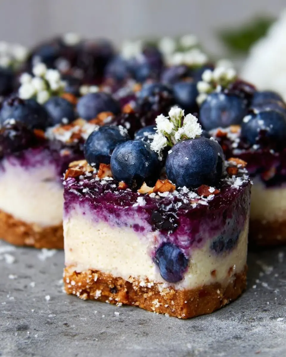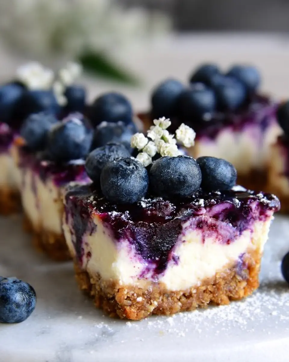 When it comes to serving your Protein Blueberry Cheesecake Bites, presentation is key! Start by cutting them into bite-sized squares for easy serving. Arrange these delightful bites on a stylish platter, and don’t shy away from adding a pop of color. Garnish with fresh blueberries and a sprinkle of coconut flakes for texture and visual appeal.