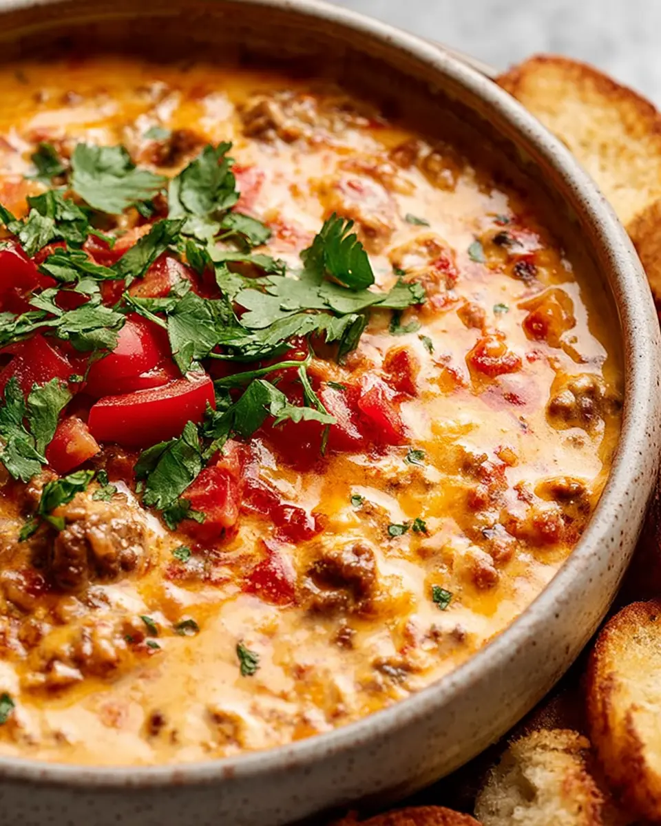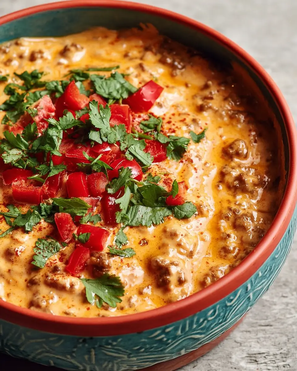 Rotel Dip is a game-changer for your gatherings, effortlessly blending savory ground beef with creamy, melty Velveeta and zesty tomatoes. It's perfect for game days or casual hangouts. Don’t forget to customize it with your favorite toppings! Enjoy a cozy, flavorful experience with friends and family—your taste buds will thank you!