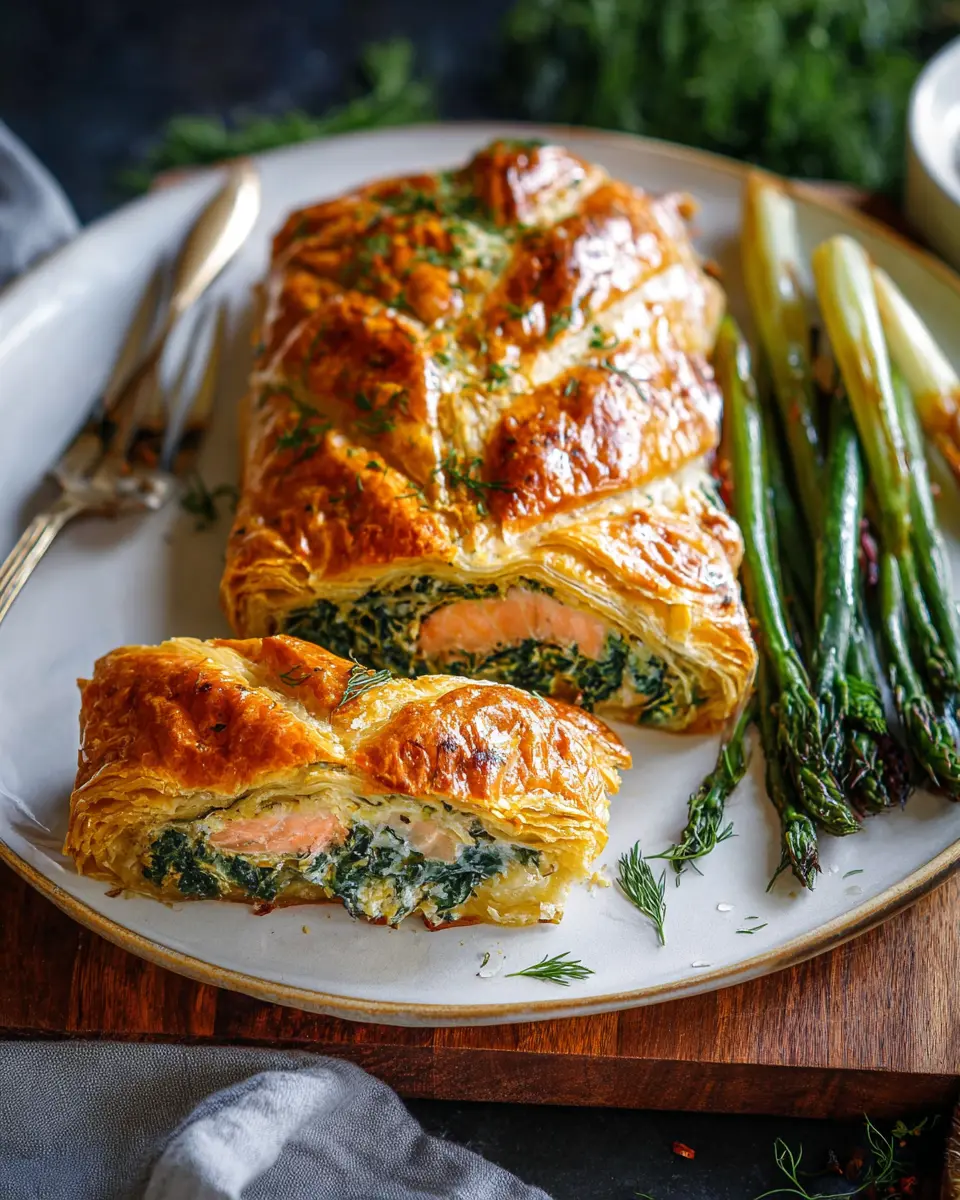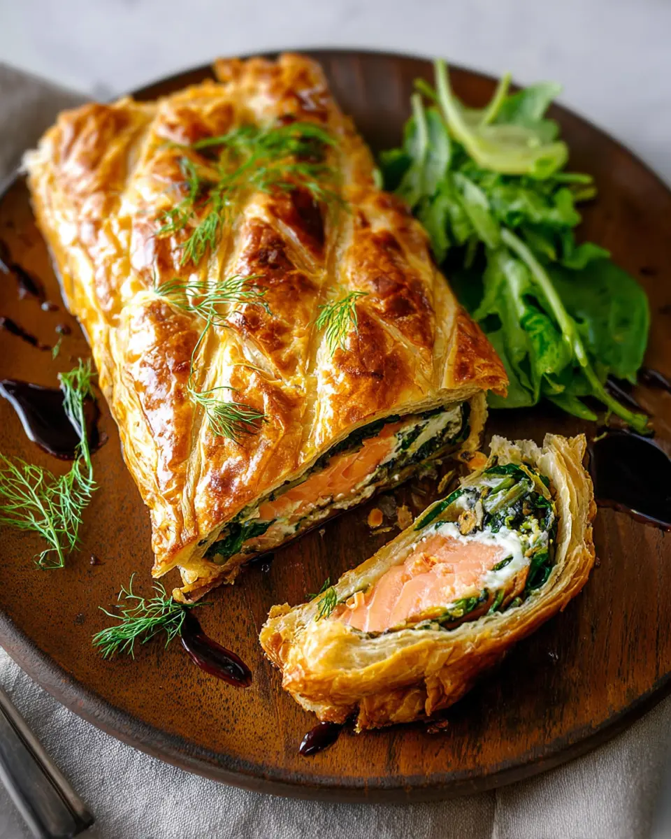 The heart of this dish lies in its incredible flavors. The fresh salmon is wonderfully complemented by a rich, creamy filling that includes sautéed spinach and fragrant herbs like dill and lemon zest. When baked, the puff pastry achieves a golden, flaky exterior that adds to the textural delight of every bite. Plus, it’s versatile! You can easily prepare this dish a day in advance, allowing you to enjoy the company of your guests without the stress of last-minute cooking.