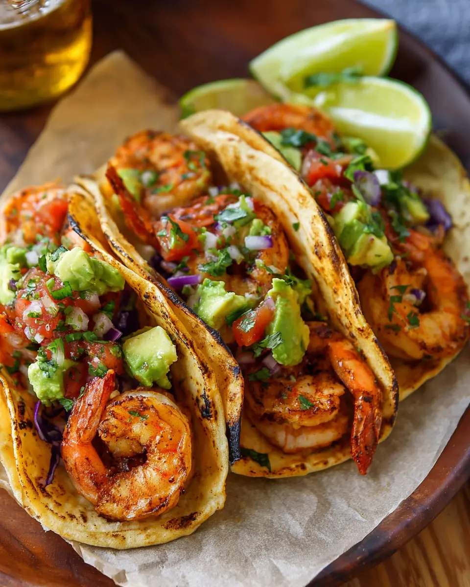 These shrimp tacos with avocado salsa blend fresh flavors with quick preparation, making them perfect for any weeknight meal or weekend get-together. Enjoy those delightful bites!