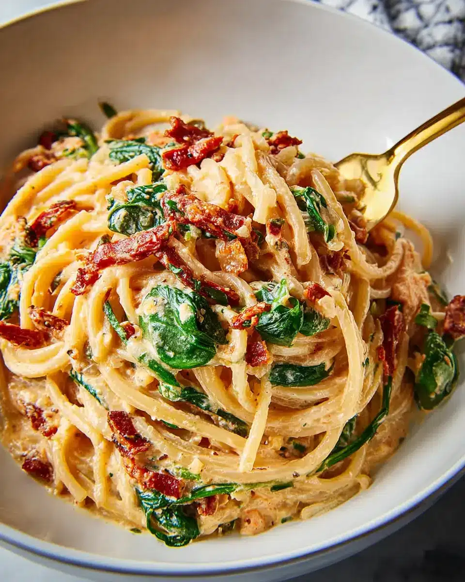 Spaghetti & Spinach with Sun-Dried Tomato Cream Sauce