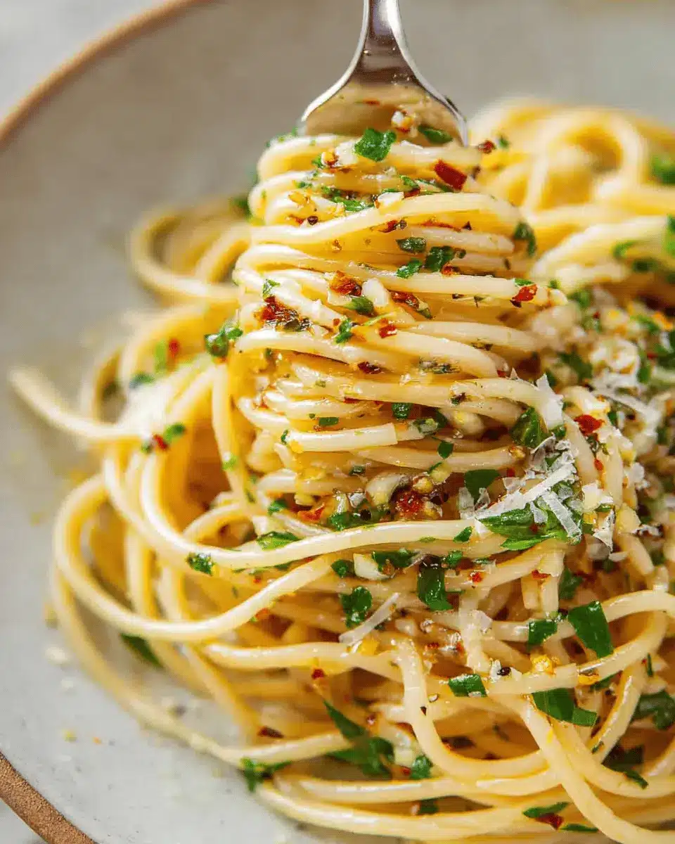 If you have any spaghetti with garlic and olive oil left, store it in an airtight container in the fridge. It should keep well for 3-4 days. When reheating, a splash of water or a drizzle of fresh olive oil will help restore moisture and flavor—making it almost as good as when it was freshly made!