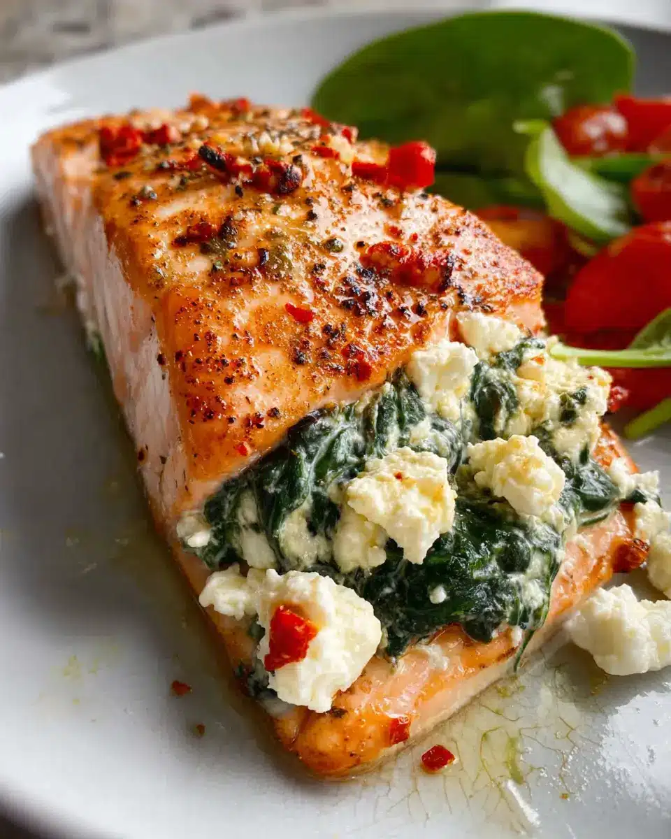 In summary, spinach and feta stuffed salmon is a delightful twist on traditional baked salmon that bursts with flavor. This dish is not only healthy but also a feast for the senses, making it perfect for impressing guests or enjoying a cozy night in. Give it a try, and savor the blend of Mediterranean goodness!