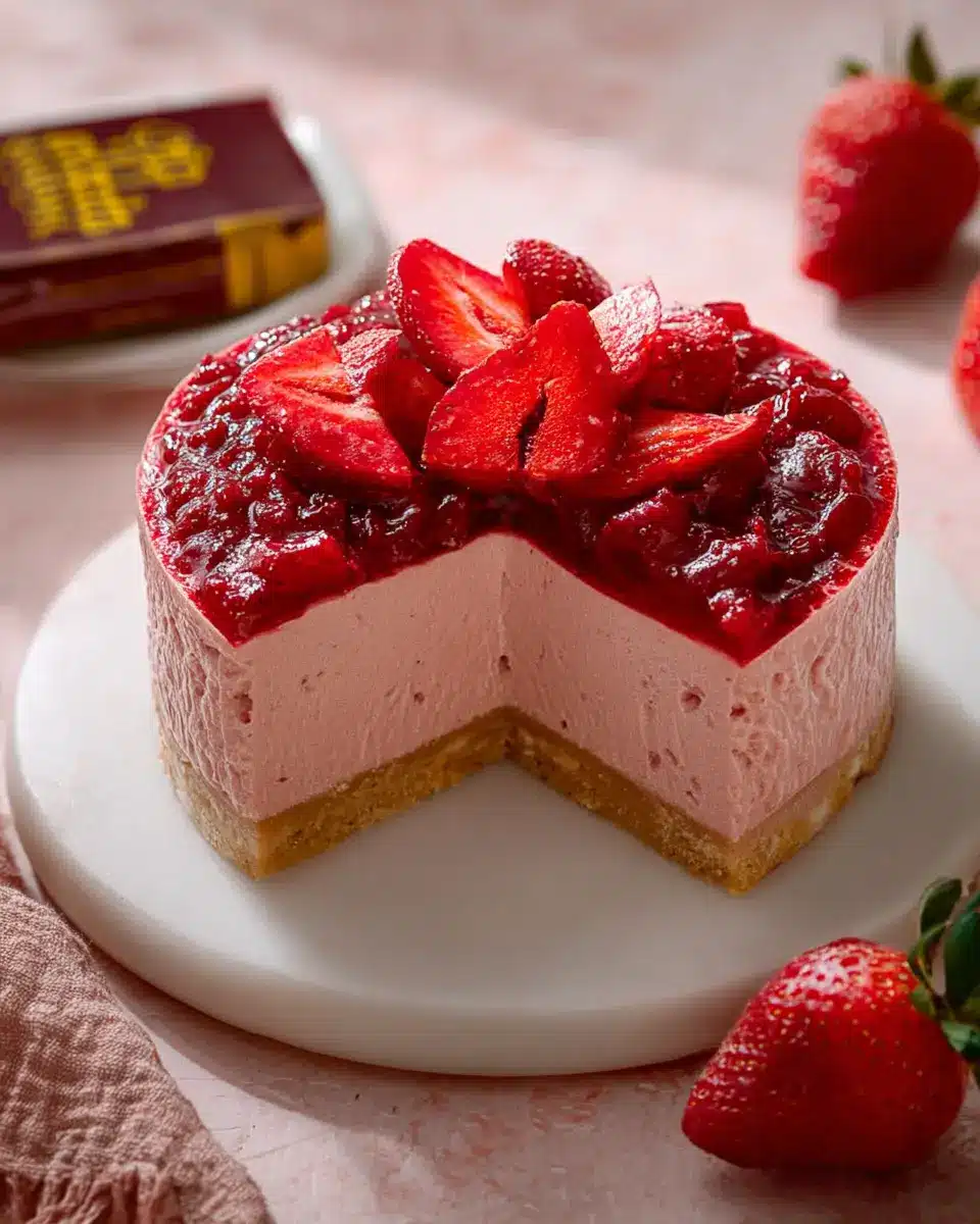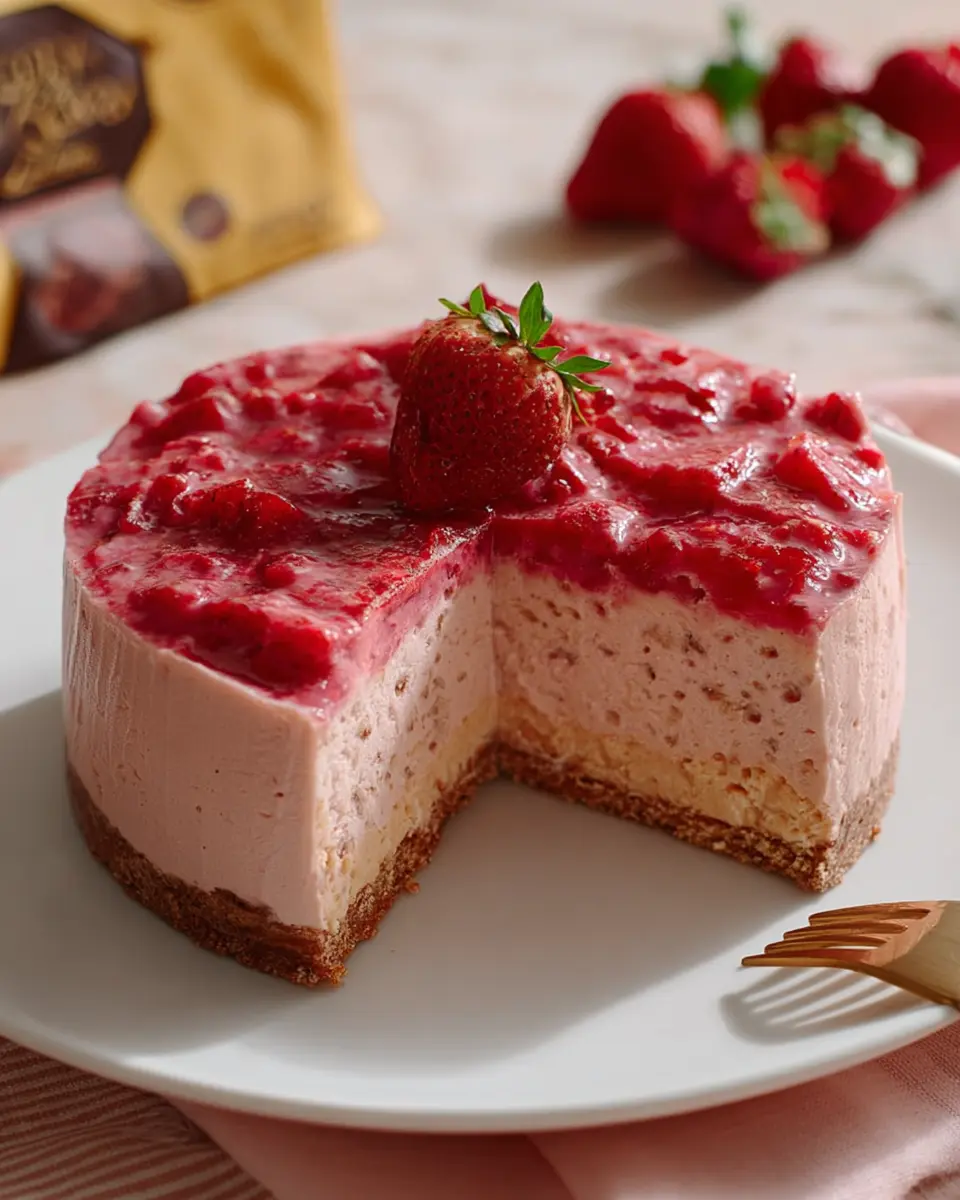 - Layered Effect: Slice the cake to showcase its beautiful layers of strawberry, mousse, and biscuits.