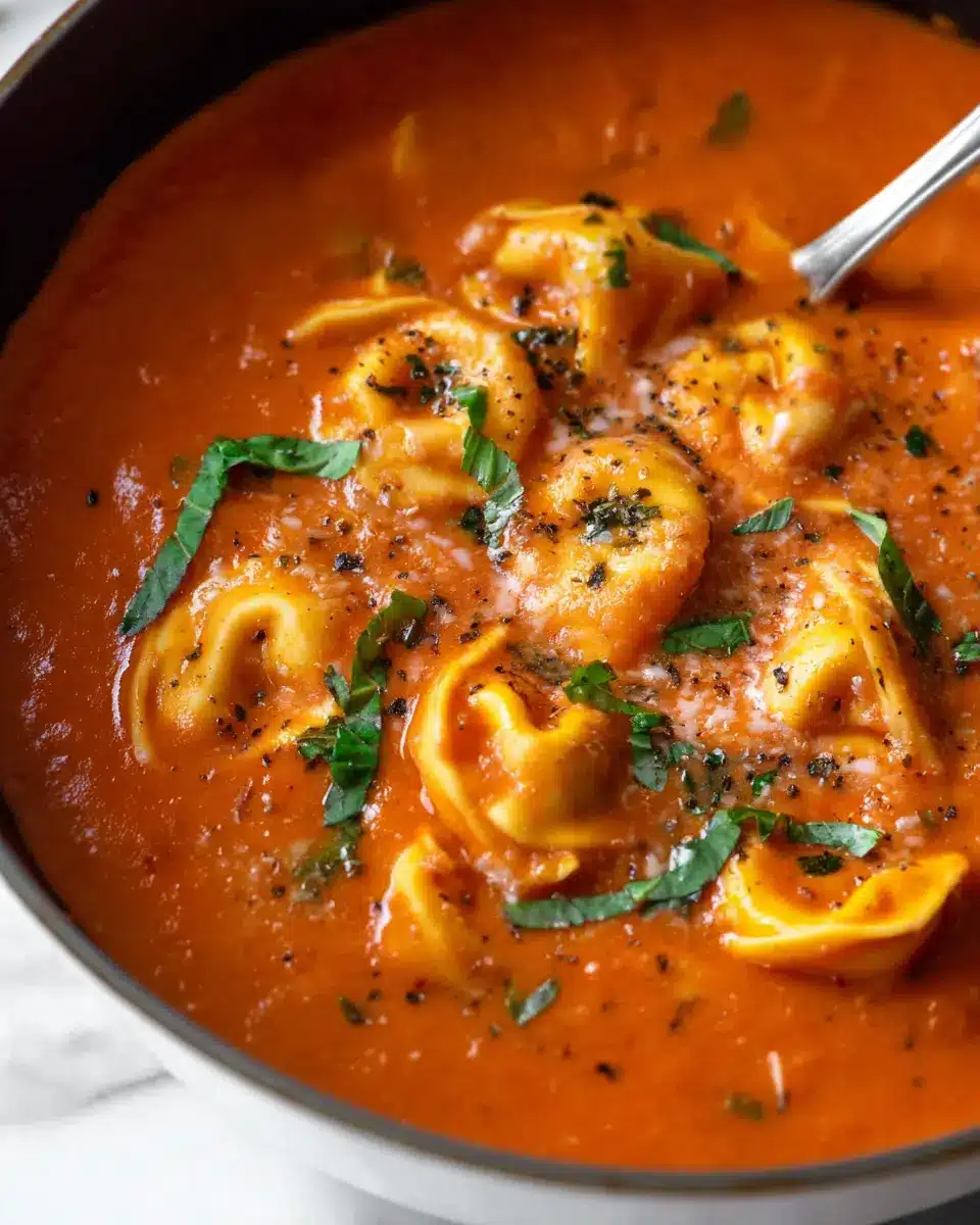 Finally, it’s time to season and serve your delicious creation. Taste your tomato tortellini soup and add salt and pepper to your liking. For an extra freshness, you can tear a small handful of fresh basil and stir it in just a few minutes before serving. This adds a lovely aromatic touch!