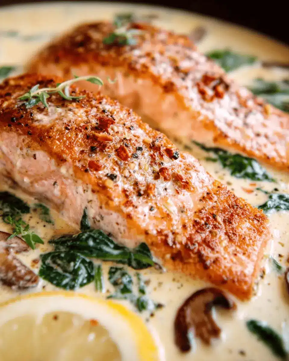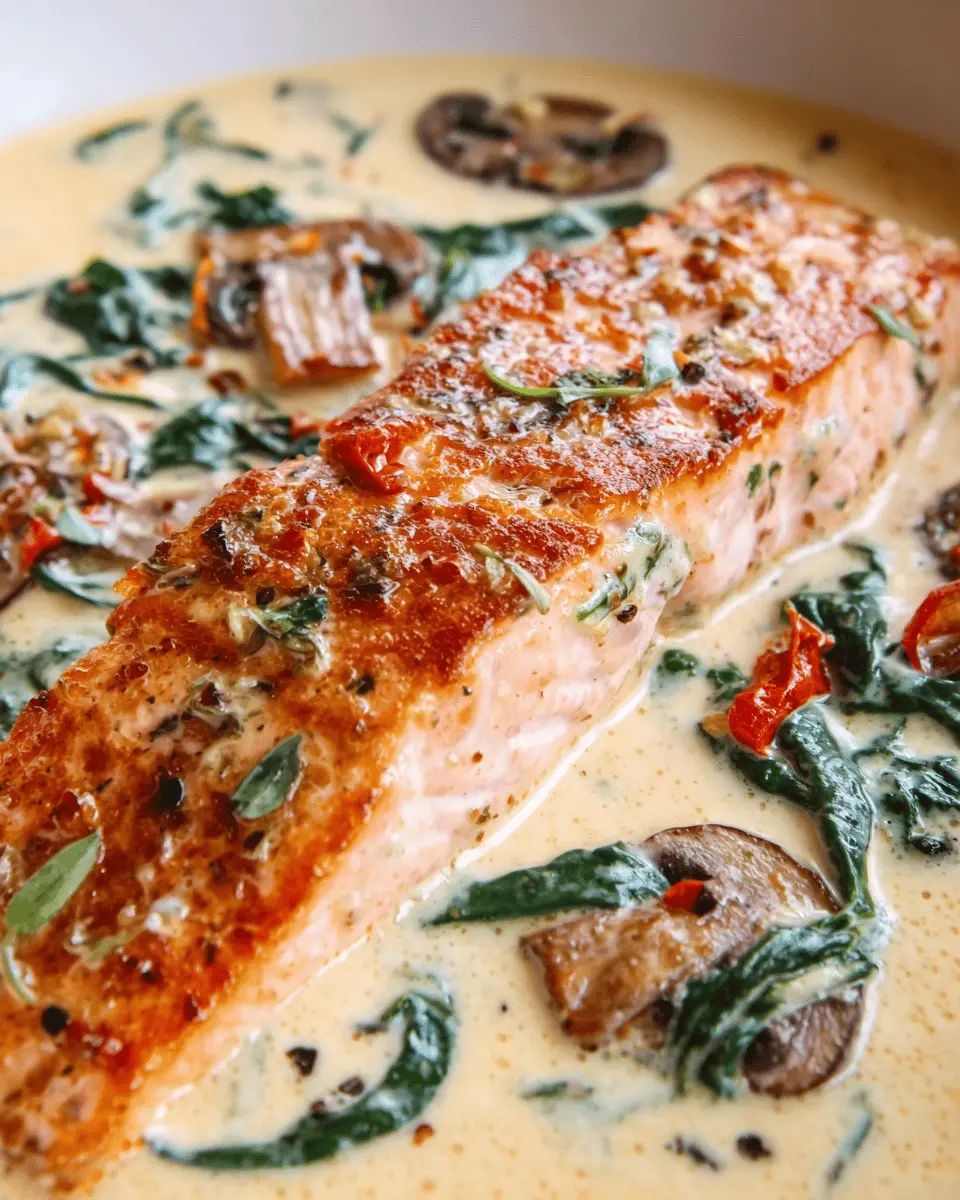 With little more than 25 minutes from prep to plate, this dish is perfect for those weeknights when you crave something delicious yet simple. You’ll enjoy fresh ingredients like salmon, spinach, and sun-dried tomatoes—all blended into a creamy, savory sauce. So, put on your apron and let’s dive into this culinary delight!