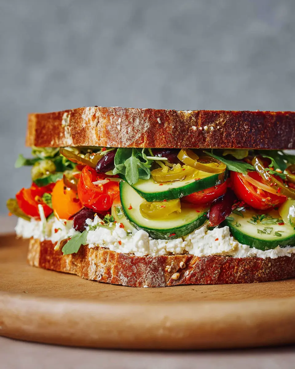 Veggie Sandwich with Whipped Feta and Pepperoncini